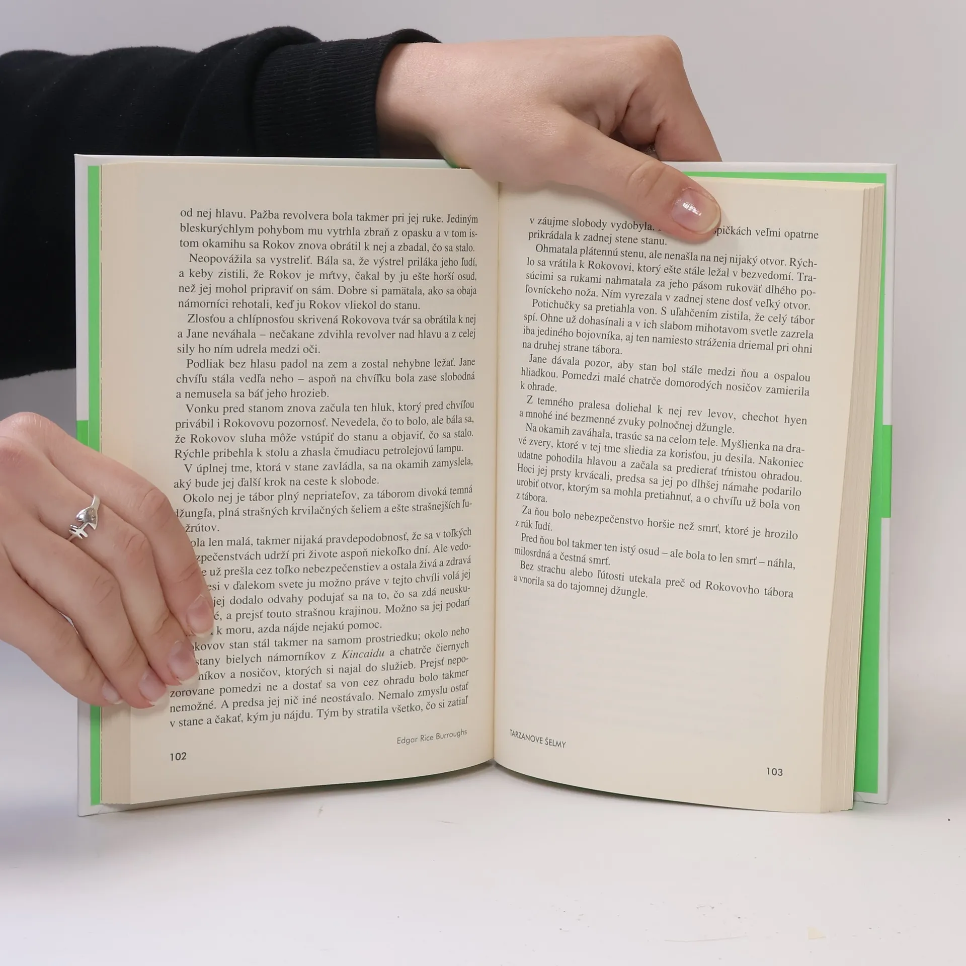 Tretí diel seriálu o Tarzanovi nás znova zavedie do tropickej džungle. Pavlovičovi a Rokovovi sa podarí vlákať Tarzana do pasce a vysadiť ho na neobývaný ostrov neďaleko Afriky. Tu si lord Greystoke podrobí obávaného leoparda Šítu a ľudoopov na čele s Akutom, najmocnejším z nich. S pomocou týchto šeliem sa dostane na pevninu, aby vysliedil únoscov svojho malého synčeka a milovanej manželky. Stopa je však stará niekoľko mesiacov a v džungli striehne množstvo nebezpečenstiev... Prvé vydanie v rámci edície Stopy, bez ilustrácií.