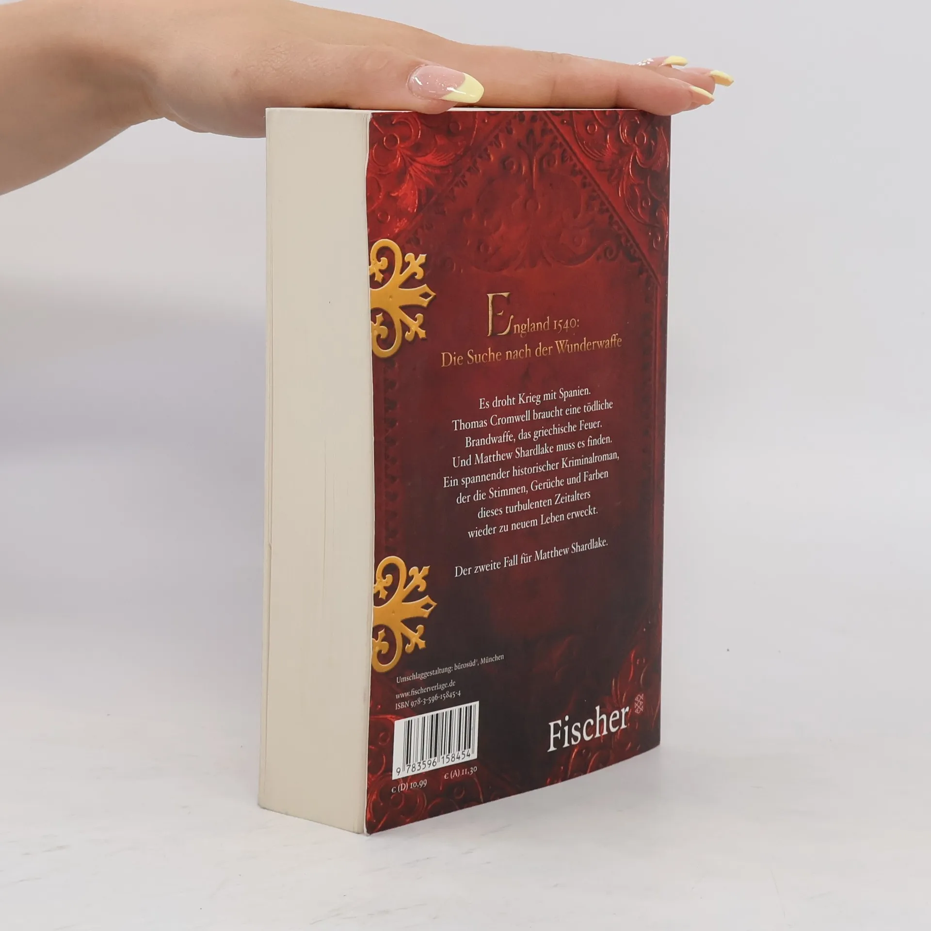 England, 1540: Die Suche nach der WunderwaffeEs ist Mai anno 1540, genau drei Jahre nach den Vorfällen im Kloster Scarnsea. Matthew Shardlake hat sich aus Cromwells Dunstkreis enttäuscht zurückgezogen, nachdem er dessen Intrigen und Machenschaften auf die Schliche gekommen war. Er lebt seitdem unbehelligt in London und soll als Rechtsanwalt eine junge Frau aus gutem Hause vertreten, der vorgeworfen wird, ihren Cousin ermordet zu haben. Die junge Frau schweigt zu alldem. Matthew ist aber von ihrer Unschuld überzeugt und versucht mit allen Mitteln, sie dem Foltertod zu entreissen. In dieser Zeit tritt auch Cromwell wieder in sein Leben: Dessen Stern ist bei Heinrich VIII. im Sinken begriffen, nachdem er diesem die deutsche Prinzession Anne von Kleve als Ehefrau vermittelt hat. Heinrich VIII. ist entsetzt über diese Wahl und hat sich schon wieder in Catherine Howard, ein Teenager und pikanterweise die Nichte des Herzogs von Norfolk, verliebt. Um sich die Gunst des Königs wieder zu sichern, braucht Cromwell etwas Spektakuläres, wobei Matthew Shardlake ihm helfen soll. In London geht das Gerücht um, dass es Leute gibt, die wissen, wie man ein griechisches Feuer entfacht - eine willkommene Waffe im heraufziehenden Krieg gegen Spanien und Frankreich. Shardlake soll die Formel besorgen - koste es, was es wolle.