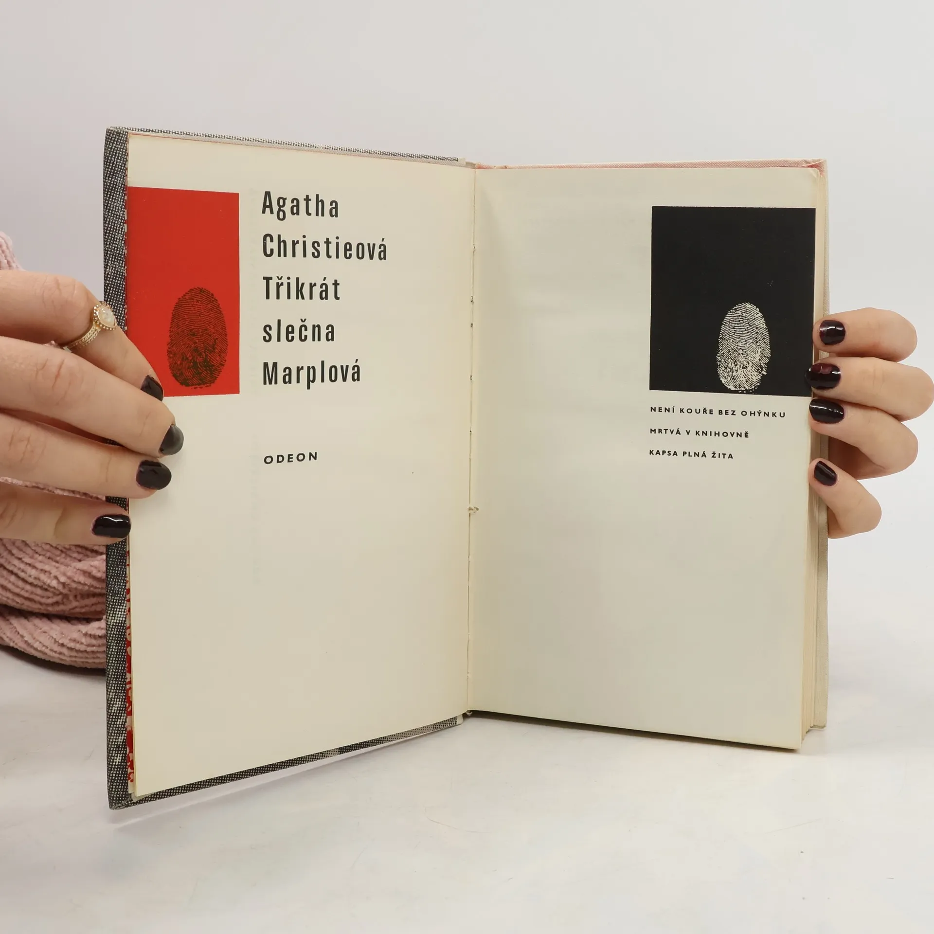 Výbor tří detektivních románů se slečnou Marplovou: Není kouře bez ohýnku, Mrtvá v knihovně a Kapsa plná žita. První vydání.