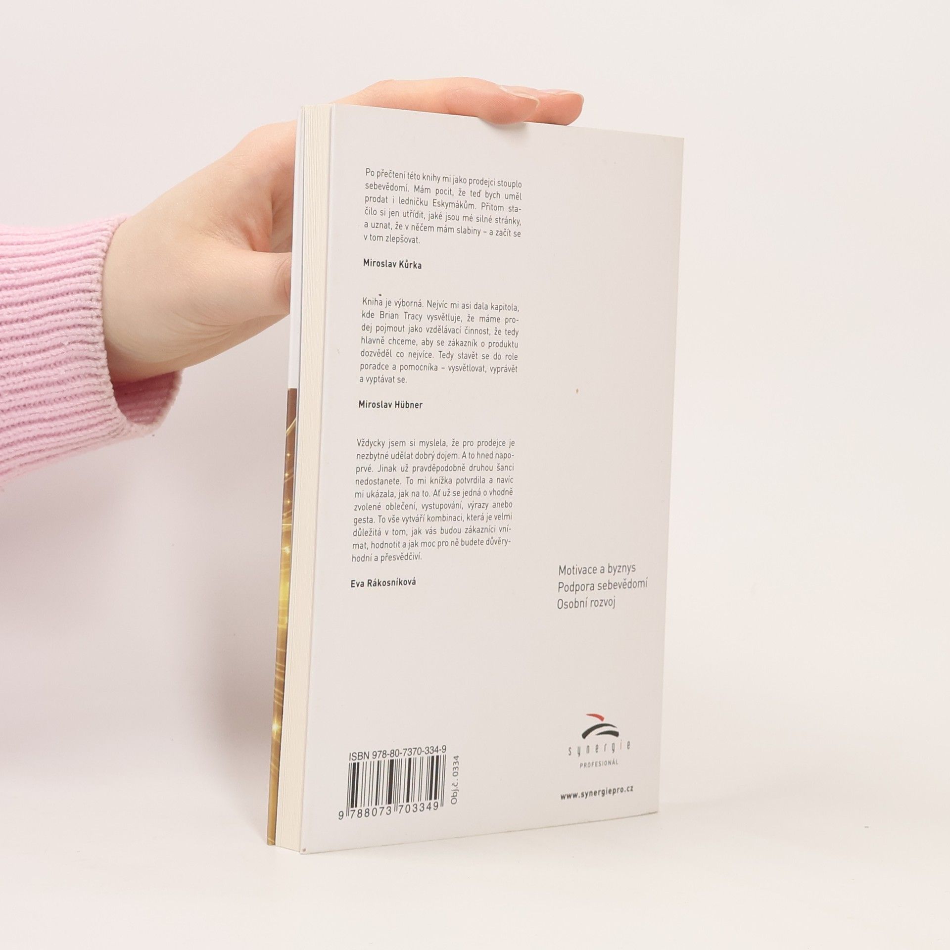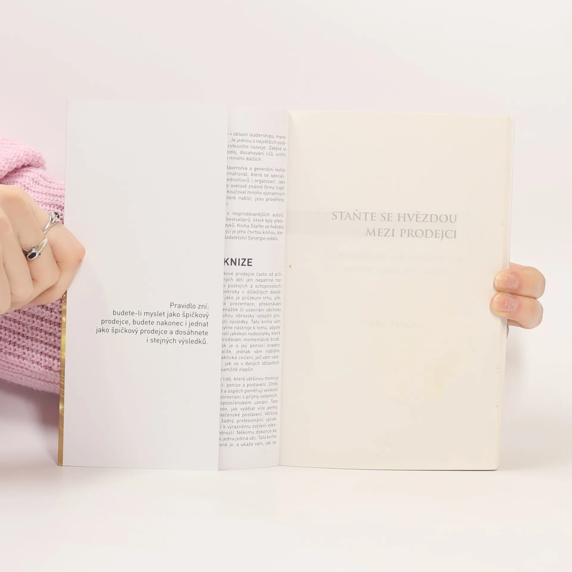 Špičkové prodejce často od průměrných dělí jen nepatrné rozdíly v postojích a schopnostech. Malé pokroky v důležitých dovednostech jako je průzkum trhu, přesvědčivá prezentace, překonávání překážek či uzavírání obchodu mohou obrovsky vylepšit prodejní výsledky. Tato kniha vám poskytne nástroje k tomu, abyste překonali jakékoli nedostatky, které vás v prodávání momentálně brzdí. Jednak je s její pomocí snadno odhalíte, jednak vám nabídne praktická cvičení, jež vám ukáží, jak se v daných oblastech okamžitě zlepšit. Prodejci jsou lidé, které většinou motivují hlavně dvě věci: peníze a postavení. Chtějí hodně vydělávat a úspěch poměřují velikostí svého příjmu v porovnání s příjmy ostatních. Navíc touží po společenském uznání. Tato kniha vám předvede, jak vydělat více peněz a jak zároveň posílit své společenské postavení. Mnoho prodejců nemá v prodávání žádný profesionální výcvik. Proto také většině z nich stačí k výraznému zvýšení výkonu pár nových znalostí a dovedností. Někomu dokonce ke skoku z průměru na špici chybí jedna jediná věc. Tato kniha vám pomůže zjistit, co to přesně je, a ukáže vám, jak se mezi prodejci stát hvězdou.