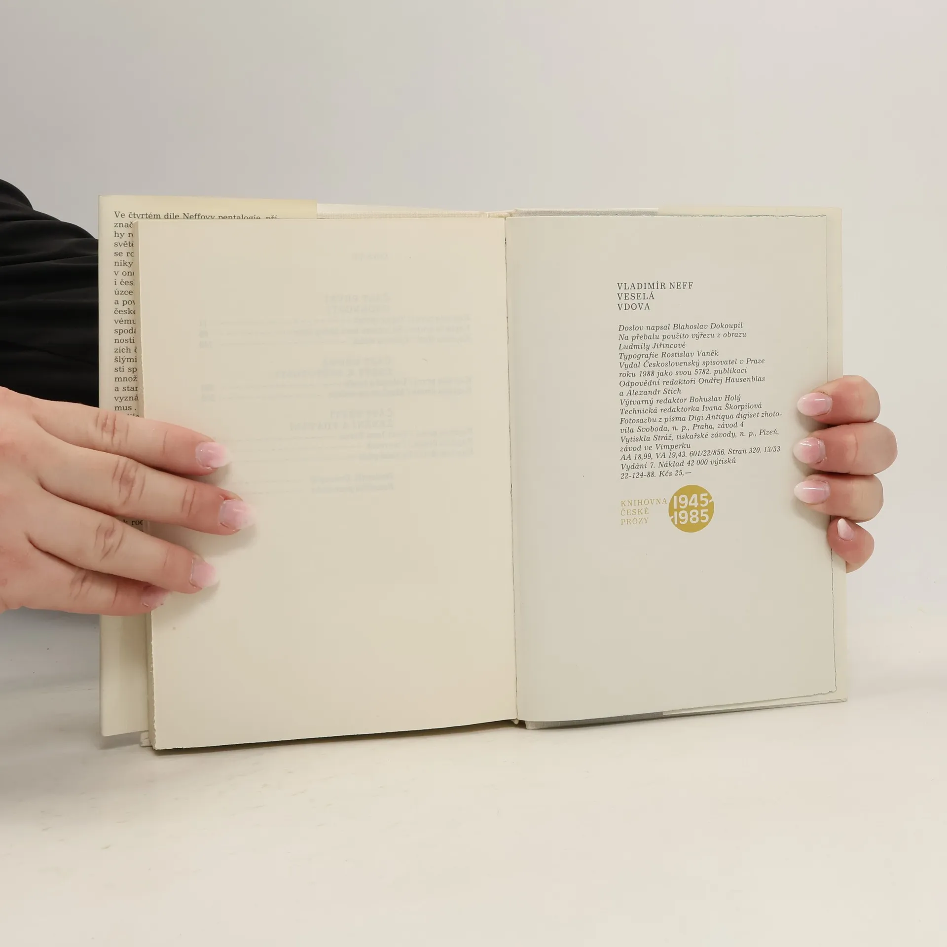 Ve čtvrtém díle Neffovy pentalogie, příznačně nazvaném Veselá vdova, se příběhy rozpínají všemi směry tak, jako se po světě rozbíhají děti Nedobylovy nebo jak se rozbíhají (a zase hroutí) obchodní podniky dětí Bornových. Doširoka se ovšem v onom čase sklonku 19. století rozproudil i český spolkový a politický život, spjatý úzce s kulturní aktivitou svých stoupenců a povznášející kolektivní i individuální české sebevědomí k podnikání průmyslovému i uměleckému. Rozmach národohospodářský i kulturní už nestojí na obratnost jedince, jako tomu bylo v předchozích časech, které byly zachyceny předešlými díly Neffovy kroniky, ale na bohatosti společenského života, v němž se rozmnožily nejen potyčky mezi mladočechy a staročechy, ale také varianty politického vyznání: realismus, anarchismus, socialismus... Češství přestalo být snem a cílem, a vlilo se do uměleckých postojů a snah i do politického hnutí. Autor sice sleduje tyto proudy jen skrze osudy členů obou rodin, ty však jsou dostatečně početné, aby se zdařilo postihnout národní život, naděje i beznaděje dost mnohostranně a zblízka. A tak v popředí svazku stojí vedle manželských tragikomedií i pěvecká dráha Emy Destinnové, ale také tragikomicky aranžovaný proces s Omladinou, z kterého (na rozdíl od ponižujících historek rodinných) vycházejí hrdinové sic otuženi, posíleni a povýšeni ve svém přesvědčení, leč přímo do vrat žalářních.