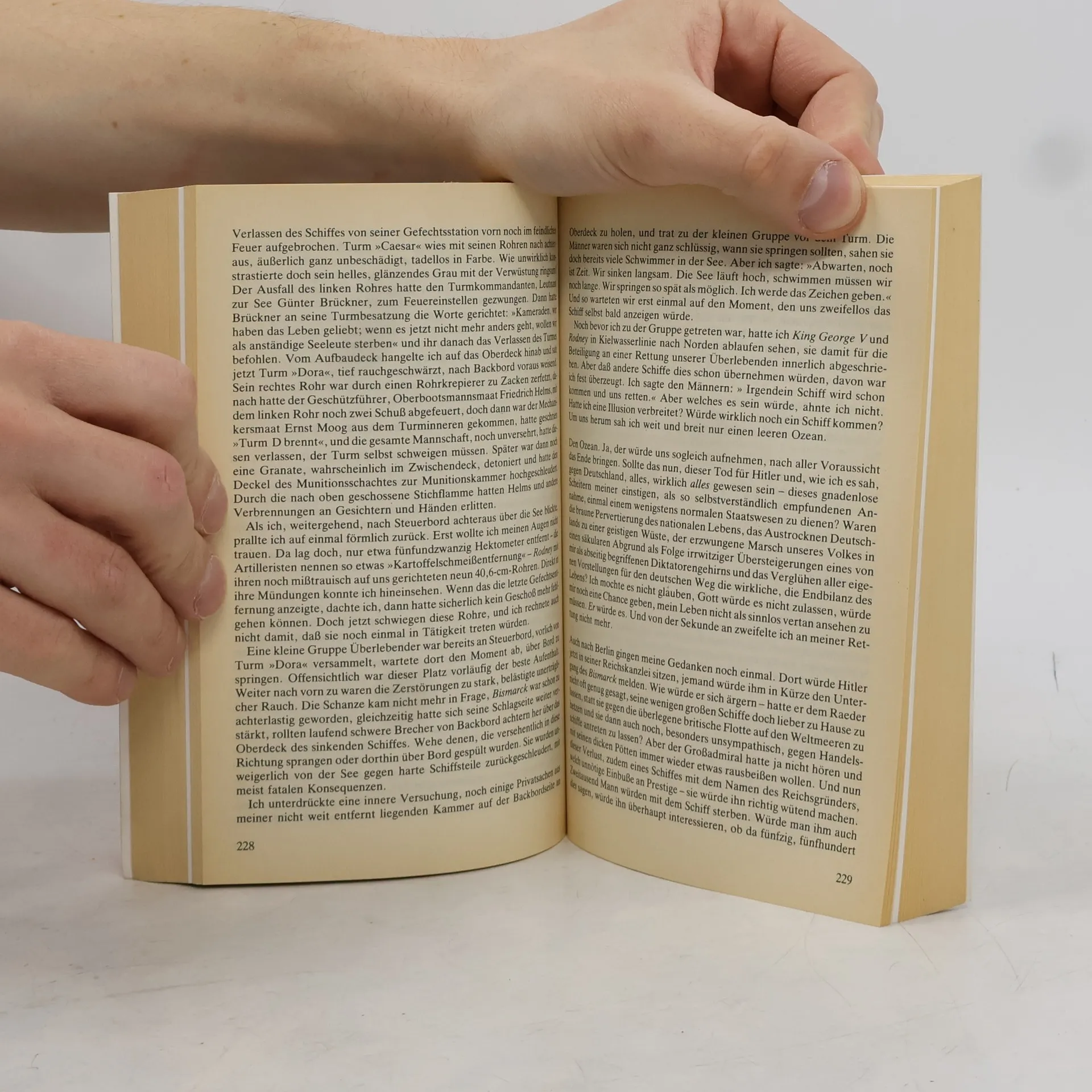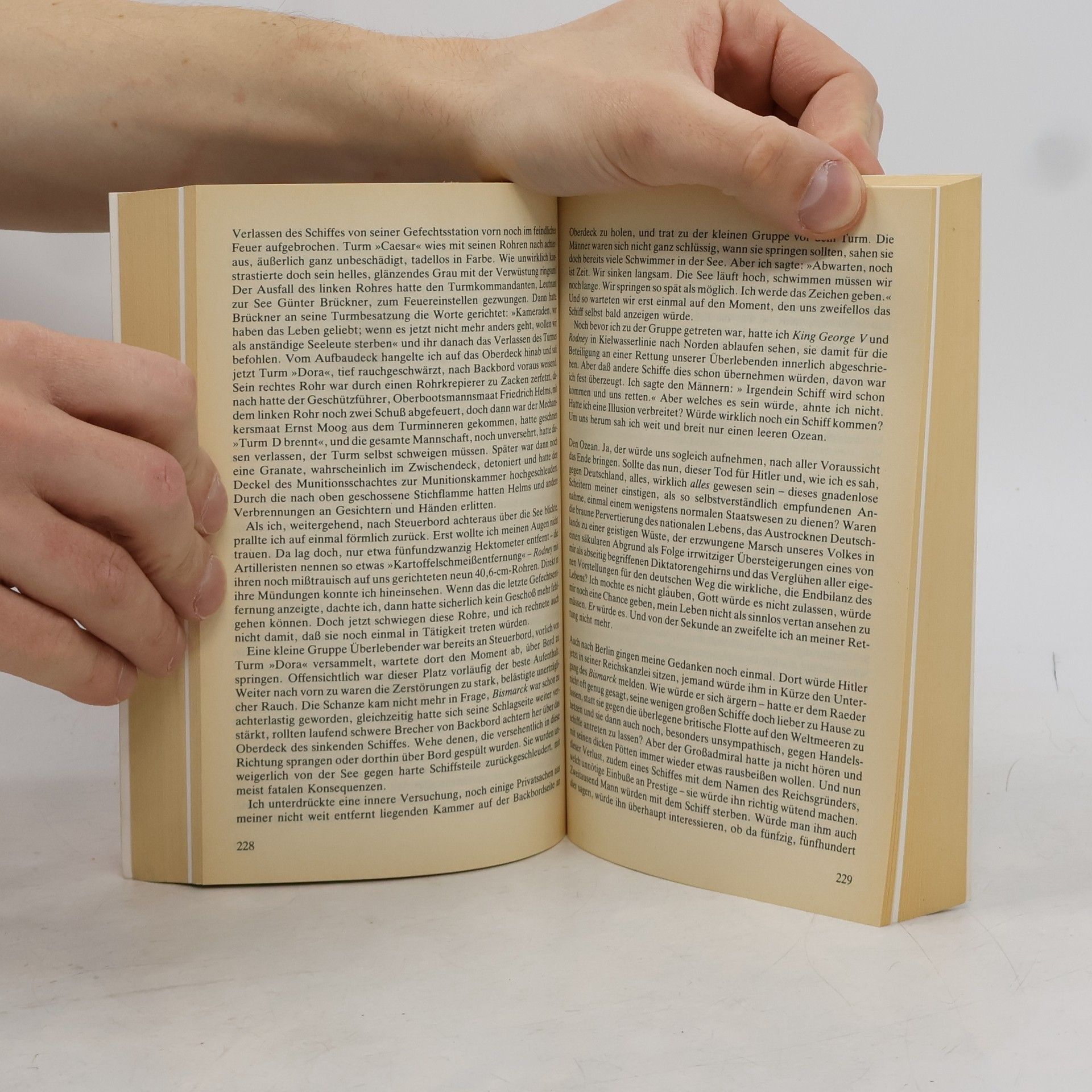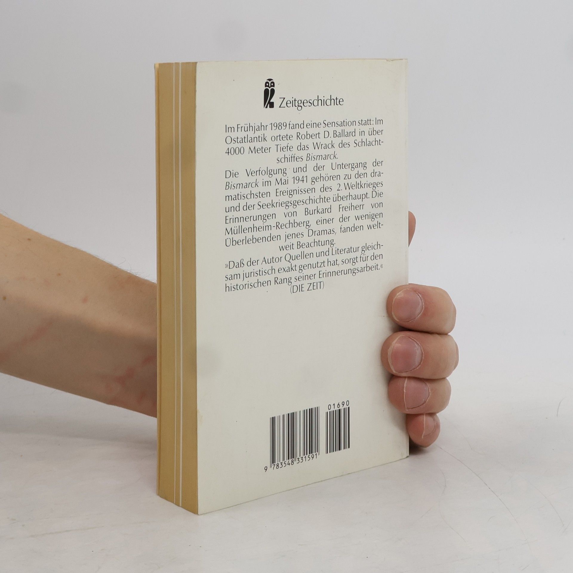 Als die „Bismarck“ am 27. Mai 1941 während ihrer ersten und einzigen atlantischen Operation, der „Rheinübung“, 400 Seemeilen westlich von Brest von britischen Schlachtschiffen versenkt wurde, überlebten nur 115 der 2221 Mann Besatzung. Die Erinnerungen Burkard Freiherr von Müllenheim-Rechbergs, einer der wenigen Überlebenden jenes Dramas, fanden weltweit höchste Beachtung. Die Verfolgung und der Untergang des Schlachtschiffes „Bismarck“ gehören zu den dramatischsten Ereignissen des Zweiten Weltkrieges und der Seekriegsgeschichte überhaupt.