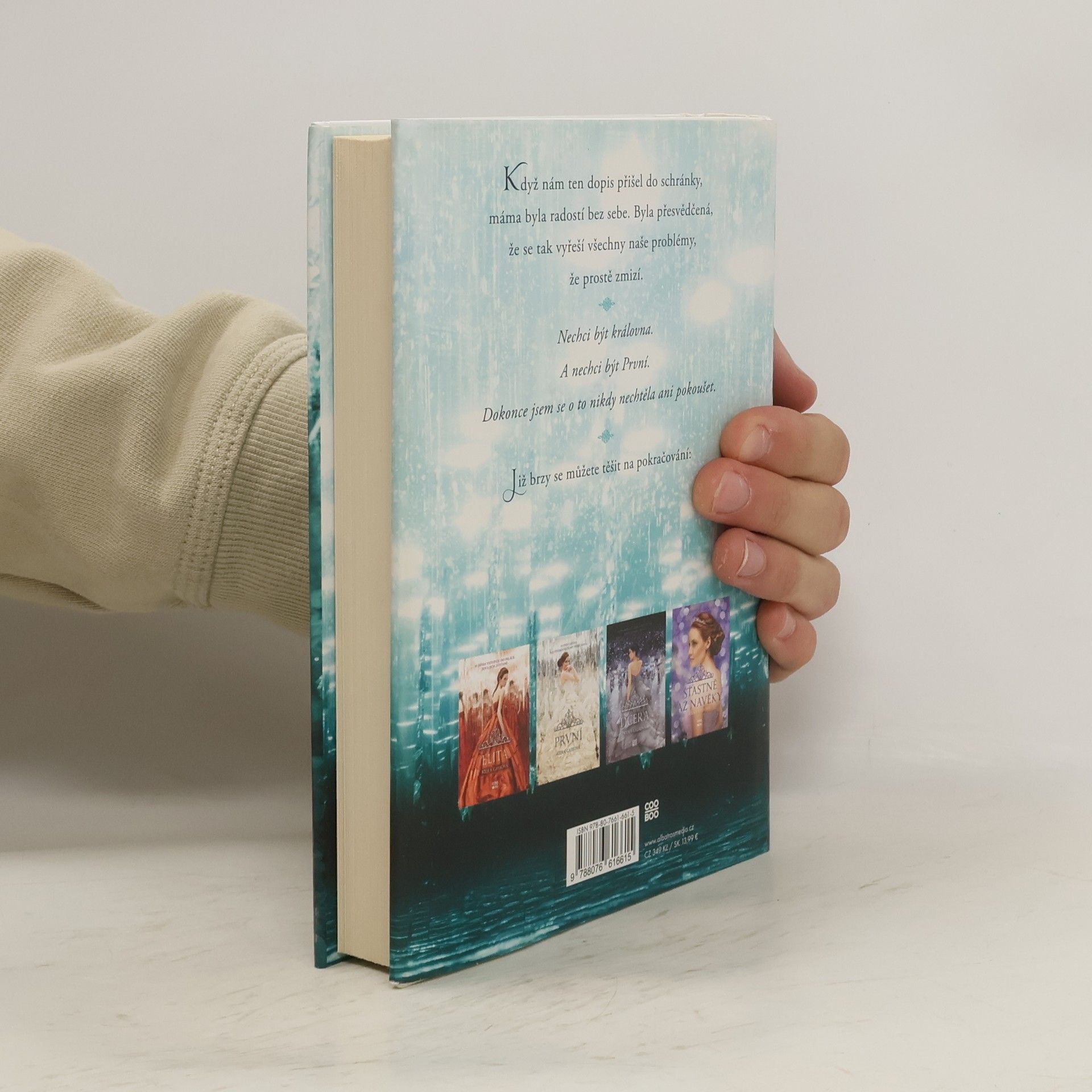 Pro dívky je Selekce životní šancí. Příležitostí k útěku od života, který jim byl stanoven od narození. Být obklopena světem třpytivých šatů a drahocenných šperků. Žít v paláci a soutěžit o srdce krásného prince Maxona. Ale pro Americu to znamená otočit se zády ke své tajné lásce Aspenovi, který je o kastu níž než ona. Nechce se jí odejít z domova a vstoupit do nelítostné soutěže o korunku.