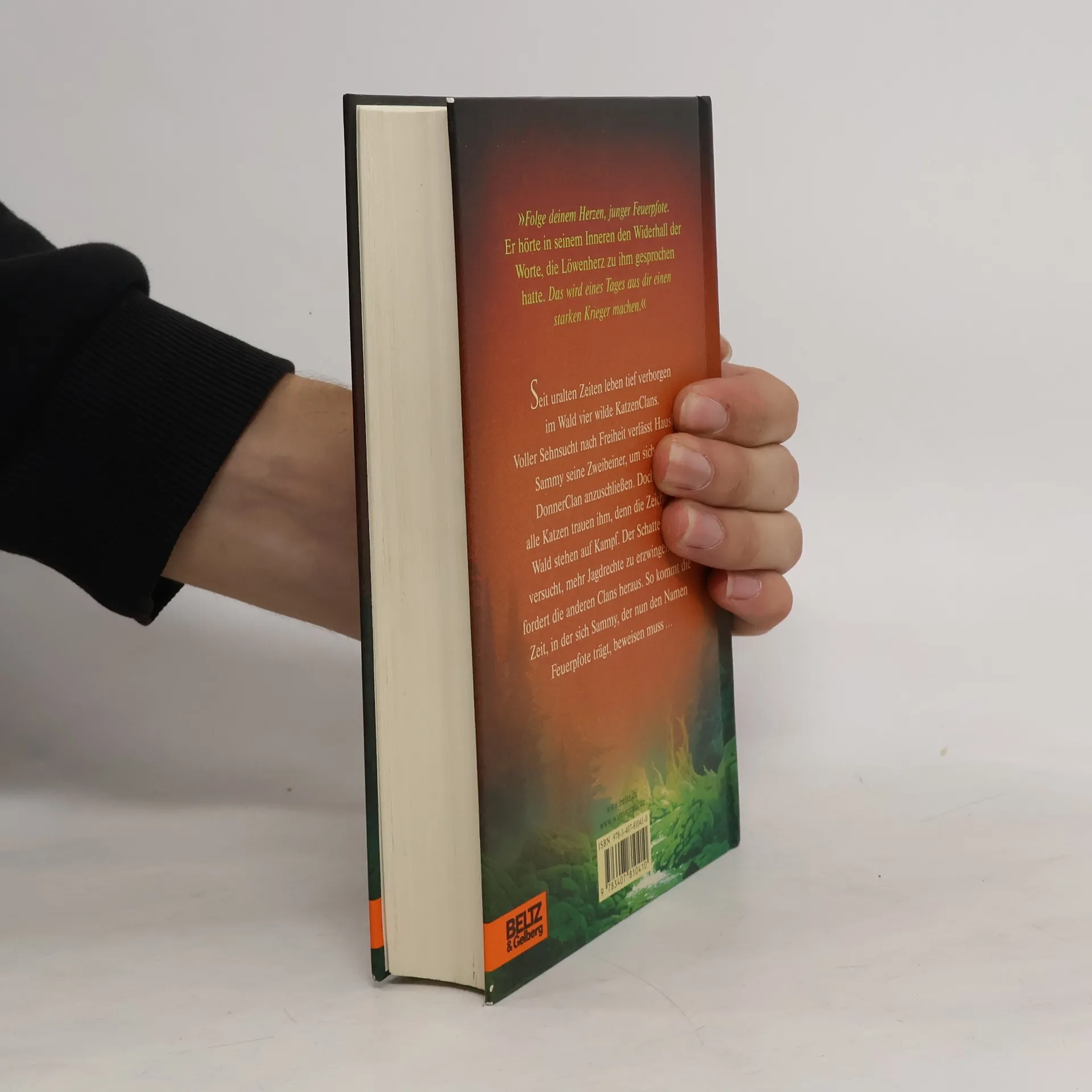 Ein Wald. Vier Clans. Und alle wollen überleben. Jenseits der Menschen, tief verborgen im Wald, leben die Katzen der Clans wild und ungezähmt. Feuerpfote, der seine Zweibeiner verließ, um sich dem DonnerClan anzuschließen, genießt das stürmische Leben des Waldes in vollen Zügen. Seite an Seite mit den wilden Katzen lernt er zu jagen, seine Instinkte zu gebrauchen, er lernt den Wald zu hören und seine Feinde zu riechen. Doch das Leben stellt ihn auch immer wieder auf die Probe, denn der Platz ist eng, das Futter knapp. Blaustern, die Königin des DonnerClans, hat Zweifel, ob es der Clan schaffen wird, bis zur Blattfrische zu überleben. Da erfährt Feuerpfote von der Prophezeiung: „Nur Feuer kann den Clan retten!“ Was hat diese Prophezeiung zu bedeuten?