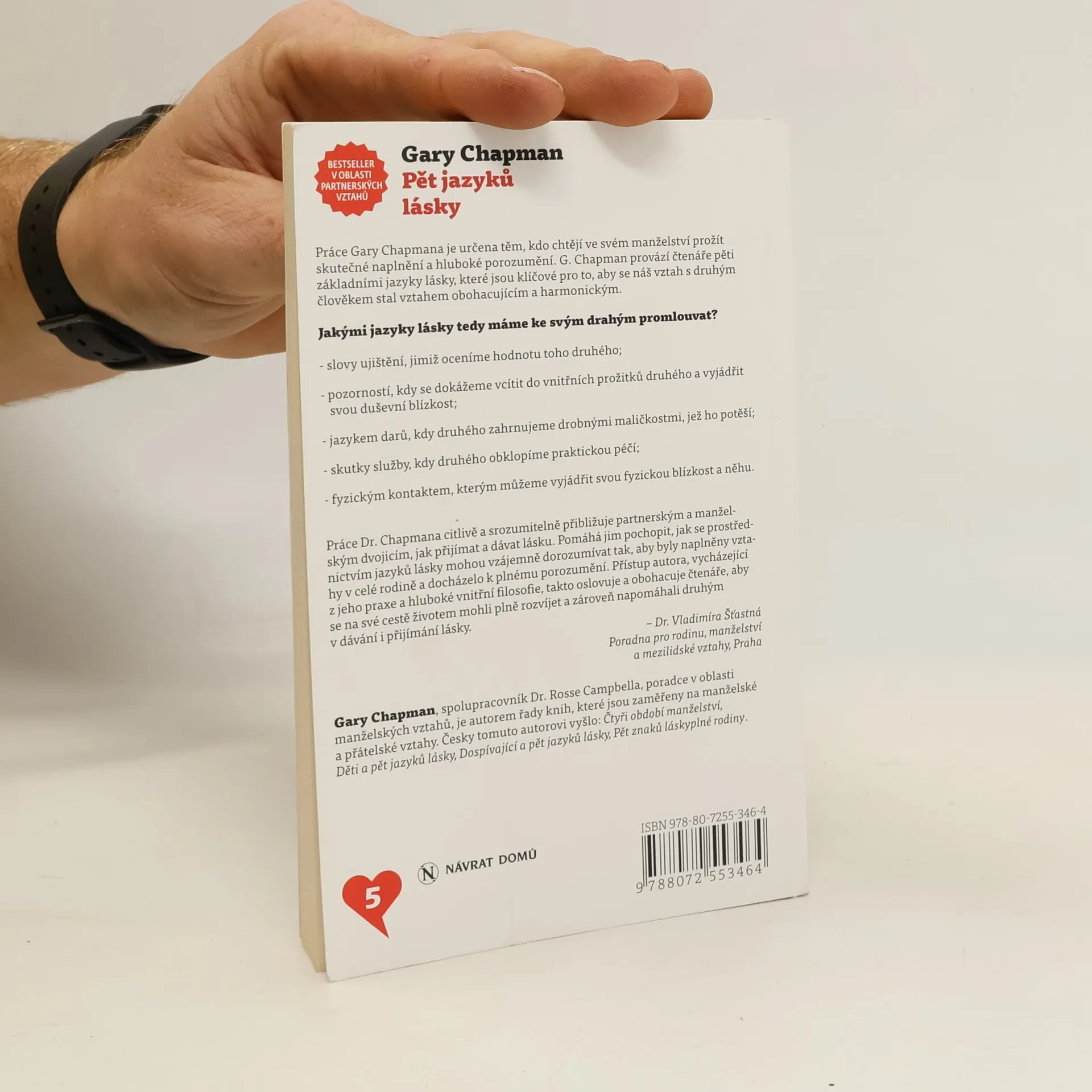 Práce Gary Chapmana je určena těm, kdo chtějí ve svém manželství prožít skutečné naplnění a hluboké porozumění. G. Chapman provází čtenáře pěti zákadními jazyky lásky, které jsou klíčové pro to, aby se náš vztah s druhým člověkem stal obohacujícím a harmonickým.