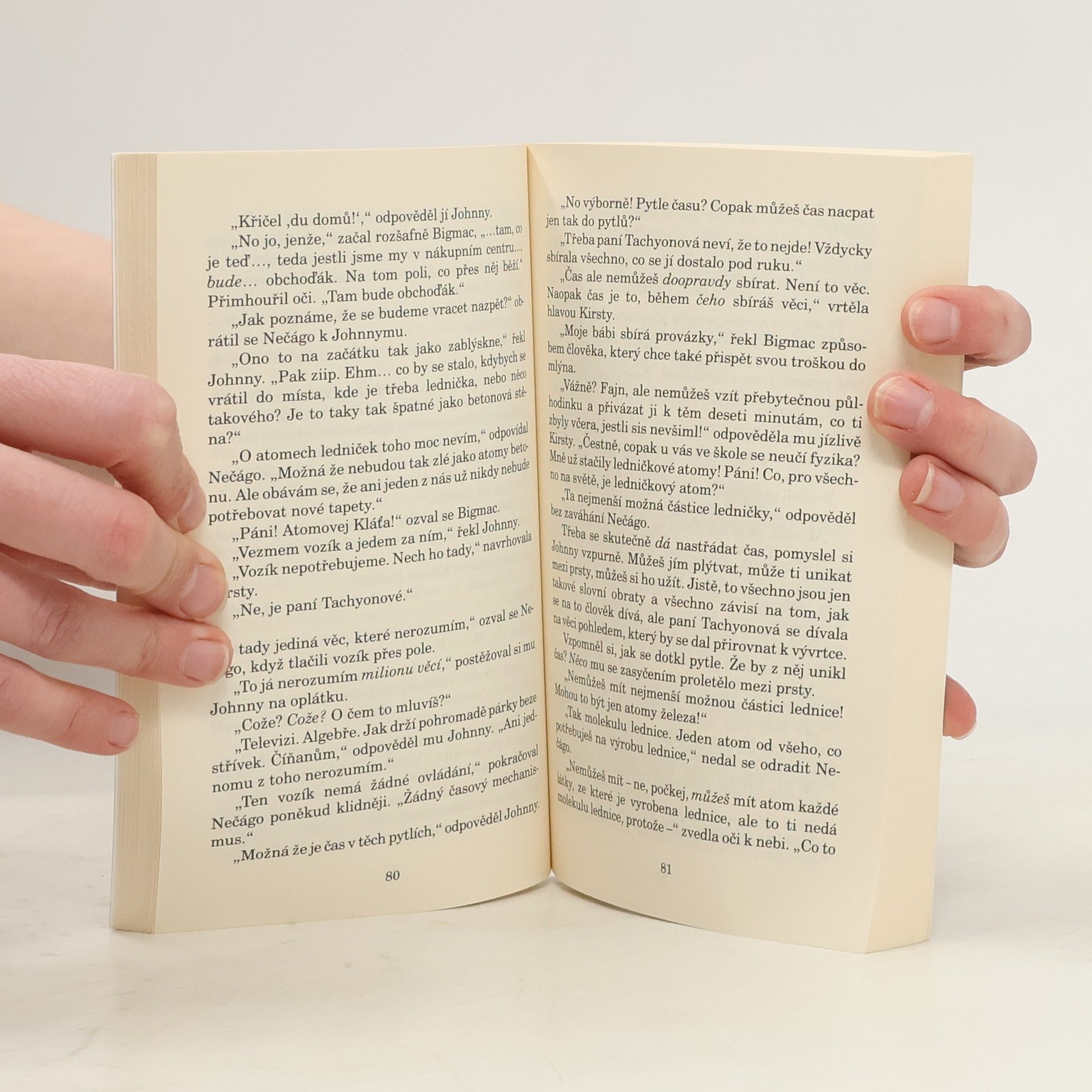 Třetí díl volné trilogie o Johnnym. Když Johnny Maxwell a jeho kamarádi našli paní Tachyonovou, místní žebračku, specializovanou na vybírání popelnic, věděli, že musí něco udělat. Byli ochotni pomoci jí jakkoliv, nebude-li to ovšem dýcháním z úst do úst. Jenže paní Tachyonová nemá jen vrzající vozík, který všude tahá s sebou, a několik igelitových tašek s pochybným obsahem. Tahle paní vlastní klíč k různým časům, různým epochám, včetně válečných dnů v Anglii roku 1941. Johnny a jeho přátelé a počítačová kamarádka Kirsty, se tentokrát ocitají v časovém příběhu, v němž jde o mnoho.
