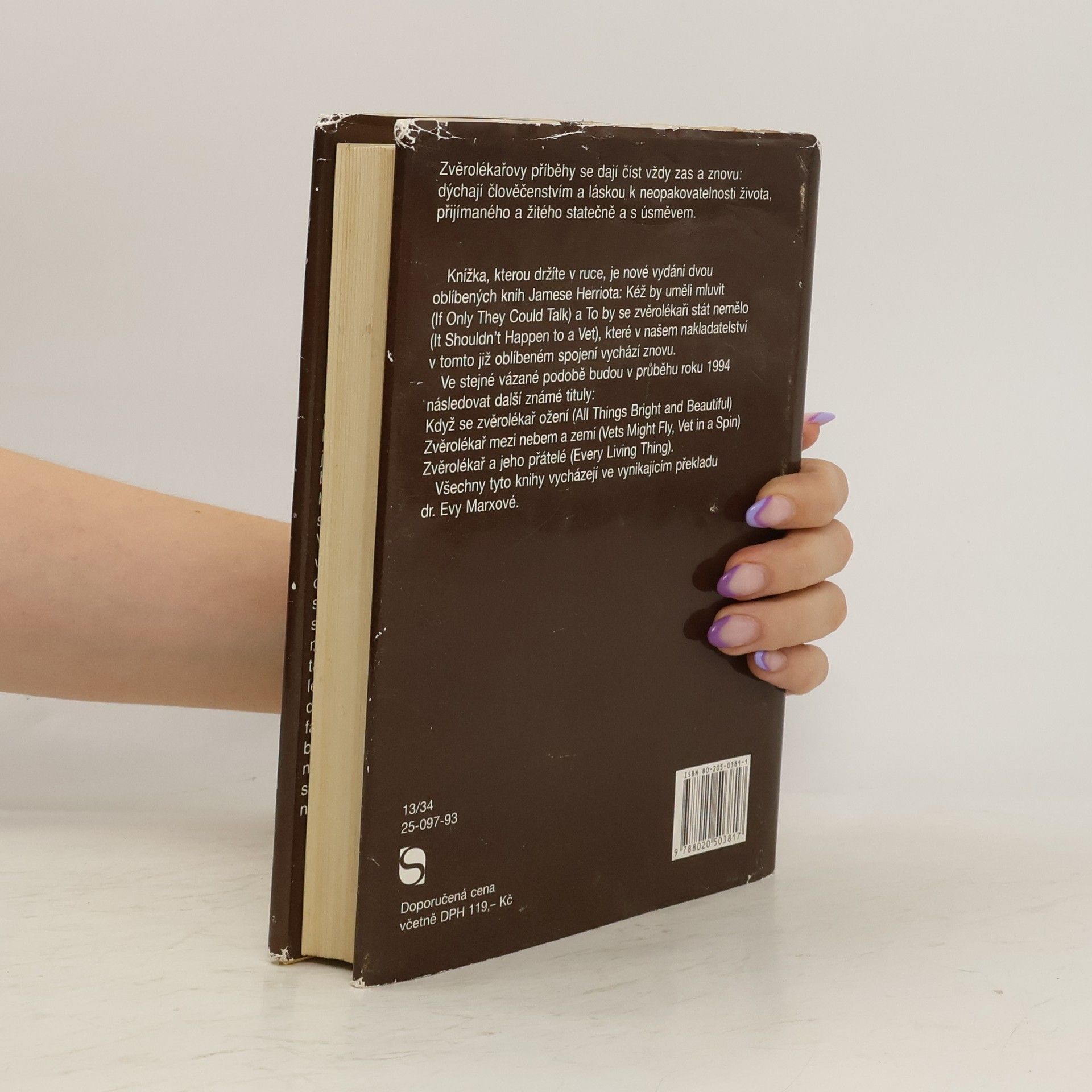 Tato knížka je vydání dvou oblíbených knih Jamese Herriota: Kéž by uměli mluvit (If Only They Could Talk) a To by se zvěrolékaři stát nemělo (It Shouldn’t Happen to a Vet). Zvěrolékařovy příběhy se dají číst vždy zas a znovu, dýchají člověčenstvím a láskou k neopakovatelnosti života, přijímaného a žitého statečně a s úsměvem. „Jestliže se rozhodnete stát se veterinářem, nebudete nikdy bohatí, ale povedete život nekonečně zajímavý a pestrý,“ vyslechl kdysi za studií budoucí autor těchto čtenářsky vděčných vyprávění z celoživotní praxe na anglickém venkově. Šňůra perliček, kterou zatím navlékl, mistrných žánrových obrázků zvířat a lidí kolem nich, tvoří „dlouhý příběh složený z drobných triumfů i pohrom“, jež ho kdy potkaly. Z každé epizody přitom vycítíte Herriotův oddaný a něžný vztah k němým pacientům, vlídnost vůči jejich majitelům, lásku ke kraji, s nímž se bytostně sžil, a ironicky humorný nadhled nad schválnostmi života a lidskými povahovými nedostatky. V tomto úvodním z volně na sebe navazujících svazků se autor představí coby čerstvý absolvent veteriny, který si teprve vydobývá ostruhy a postupně si u opatrných, málo důvěřivých farmářů získává respekt. Seznámí nás také se svým prvním zaměstnavatelem a pozdějším společníkem Siegfriedem Farnonem, s jeho poněkud fanfaronským, ale neméně sympatickým bratrem Tristanem, s nezapomenutelným Skeldale House v Darrowby i se svou budoucí ženou Helenou Aldersovou.