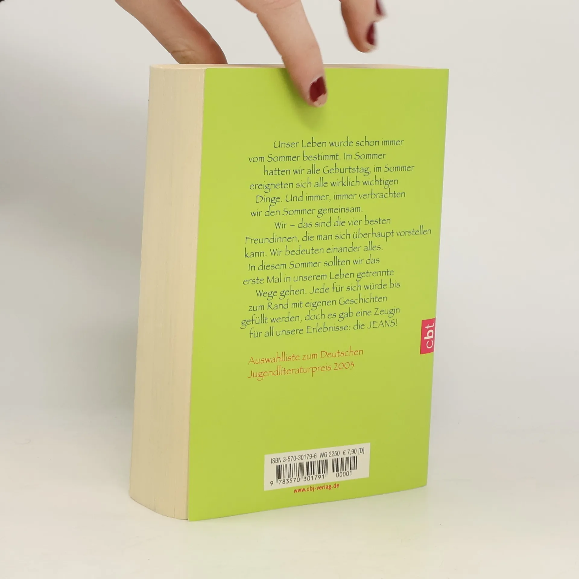 Es ist ein Sommer wie kein anderer. Carmen, Bridget, Lena und Tibby werden süße 16 und zum ersten Mal trennen sich ihre Wege. Um in Kontakt zu bleiben, schicken sie eine Jeans auf Reisen – von einer zur anderen, um die halbe Welt, in einer Zeit, in der sich alles verändert und die vier ganz unterschiedliche Erfahrungen machen mit Liebe, Verlust, Trauer und Freundschaft. Auf der Auswahlliste zum Deutschen Jugendliteraturpreis 2003