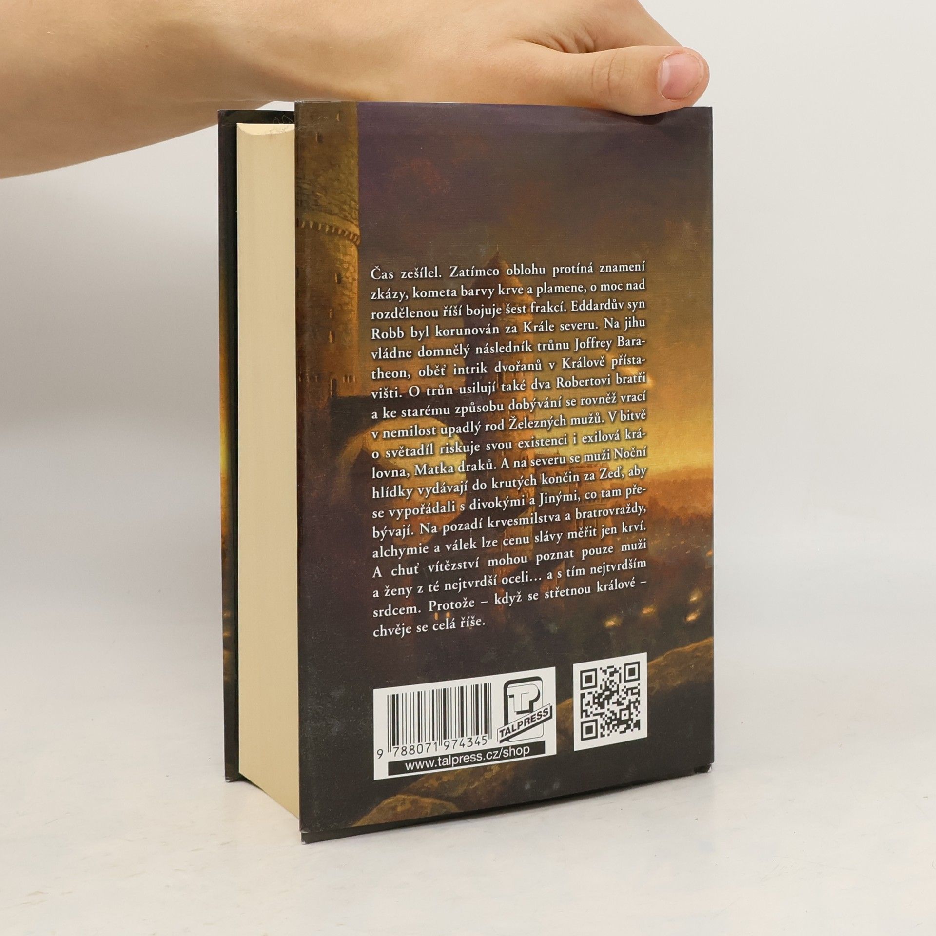 Čas zešílel. Deset let dlouhé léto pokoje a hojnosti se blíží ke konci, a jako zuřivá bestie se neodvratně blíží krutá, mrazivá zima. Dva mocní muži – král Robert Baratheon a lord Eddard Stark –, kteří třímali žezlo moci v časech nuceného míru, jsou mrtví. Zatímco oblohu protíná znamení zkázy – kometa barvy krve a plamene –, o moc nad rozdělenou říší bojuje šest frakcí. Eddarův syn Robb byl korunován za Krále severu. Na jihu vládne domnělý následník trůnu Joffrey Baratheon, oběť intrik dvořanů v Králově přístavišti. O trůn usilují také dva Robertovi bratři a ke starému způsobu dobývání se rovněž vrací v nemilost upadlý rod Železných mužů. V bitvě o světadíl riskuje svou existenci i exilová královna, Matka draků. A na severu se muži Noční hlídky vydávají do krutých končin za Zeď, aby se vypořádali s divokými a Jinými, co tam přebývají. Na pozadí krvesmilstva a bratrovraždy, alchymie a válek lze cenu slávy měřit jen krví. A chuť vítězství mohou poznat pouze muži a ženy z té nejtvrdší oceli… a s tím nejtvrdším srdcem. Protože – když se střetnou králové, chvěje se celá říše.