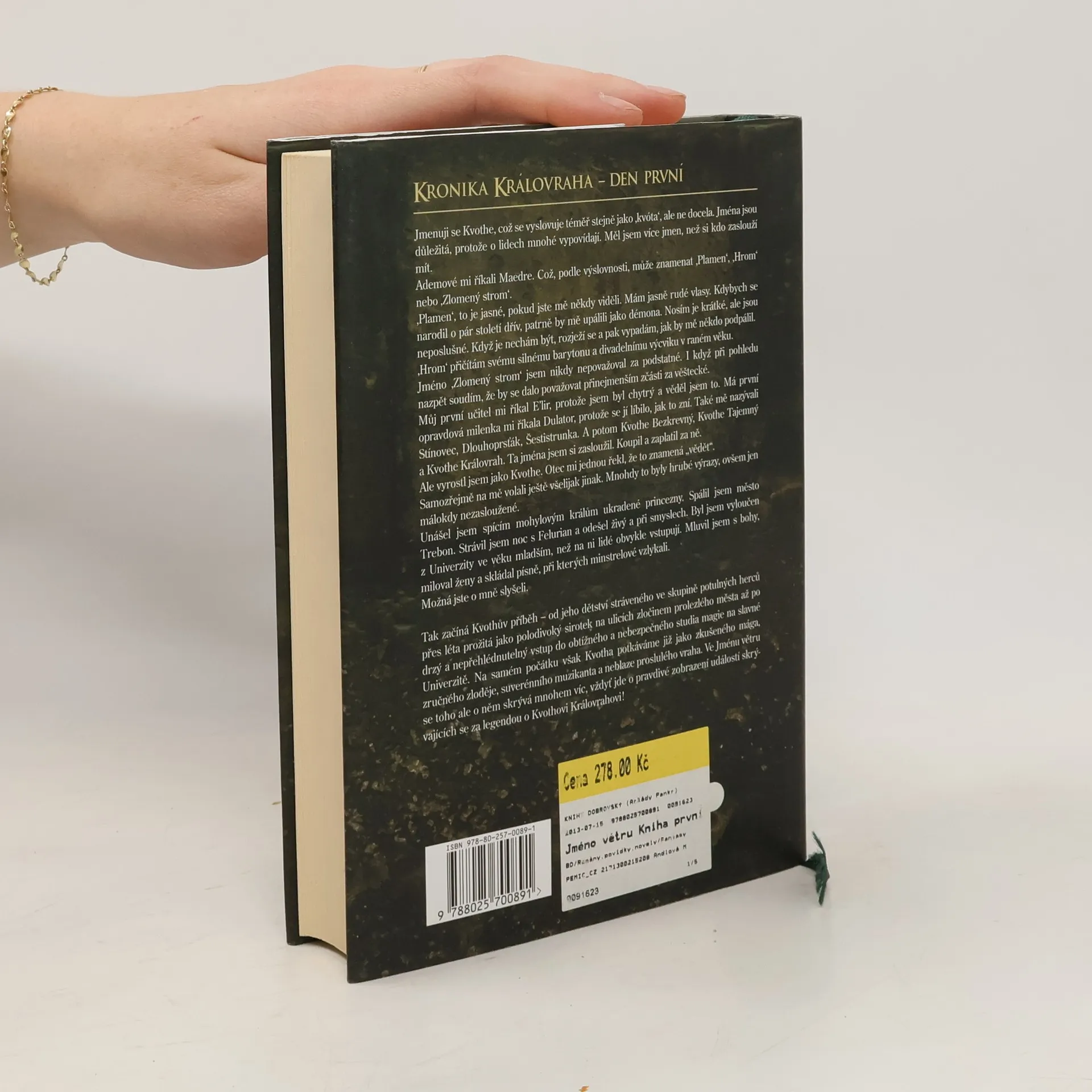 Je to příběh z jiného světa, ale žádný strach, dostanete k němu mapu. Podle slov autora jde o legendu o Hrdinovi, viděnou ze zákulisí, o zkoumání a odhalování světa, o hledání pravdy, skryté v pohádkách a bájích... V první knize začíná Kvothe vyprávět, či spíš diktovat Kronikáři, o svém dětství ve společnosti kočovných umělců, o děsivé smrti svých rodičů rukou bájných Čandrínů, o všem, co zažil jako sirotek v drsném přístavním městě Tarbeanu, prolezlém zločinem, a o těžkých začátcích na Univerzitě, vyučující magická umění, kde se chce dovědět co nejvíc o tajemných vrazích, kteří pro většinu rozumných, vzdělaných lidí vůbec neexistují... Děj knihy se rozvíjí pomalu, ale postupně strhne jako velká řeka, která slibuje moře s pořádným vlnobitím, a čtenář by chtěl hned, teď, číst dál a vědět, jak to dopadlo.