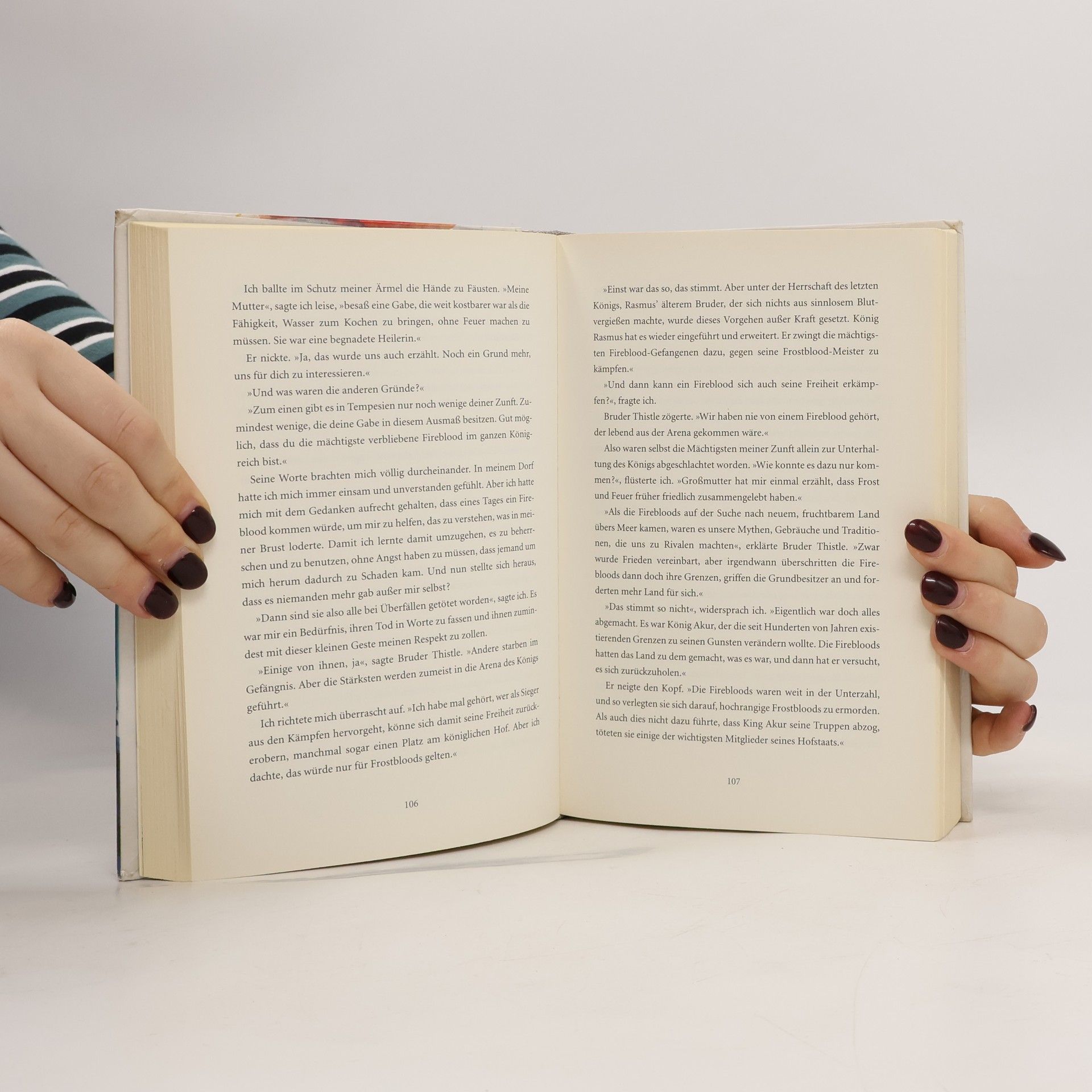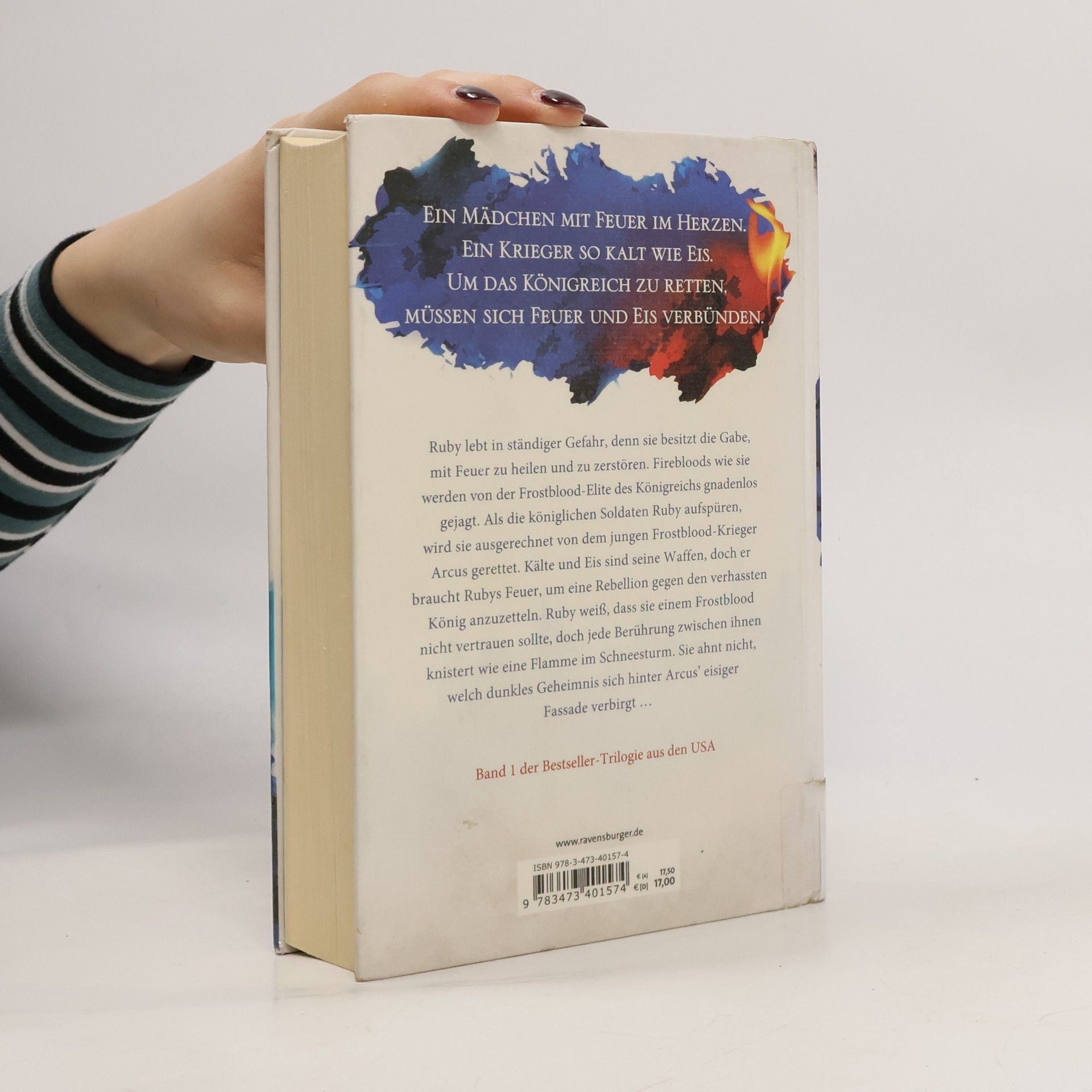 Ein Mädchen mit Feuer im Herzen.Ein Krieger so kalt wie Eis.Um das Königreich zu retten, müssen sich Feuer und Eis verbünden. Ruby lebt in ständiger Gefahr, denn sie besitzt die Gabe, mit Feuer zu heilen und zu zerstören. Firebloods wie sie werden von der Frostblood-Elite des Königreichs gnadenlos gejagt. Als die königlichen Soldaten Ruby aufspüren, wird sie ausgerechnet von dem jungen Frostblood-Krieger Arcus gerettet. Kälte und Eis sind seine Waffen, doch er braucht Rubys Feuer, um eine Rebellion gegen den verhassten König anzuzetteln. Ruby weiß, dass sie einem Frostblood nicht vertrauen sollte, doch jede Berührung zwischen ihnen knistert wie eine Flamme im Schneesturm. Sie ahnt nicht, welch dunkles Geheimnis sich hinter Arcus‘ eisiger Fassade verbirgt … Band 1 der Bestseller-Trilogie aus den USA