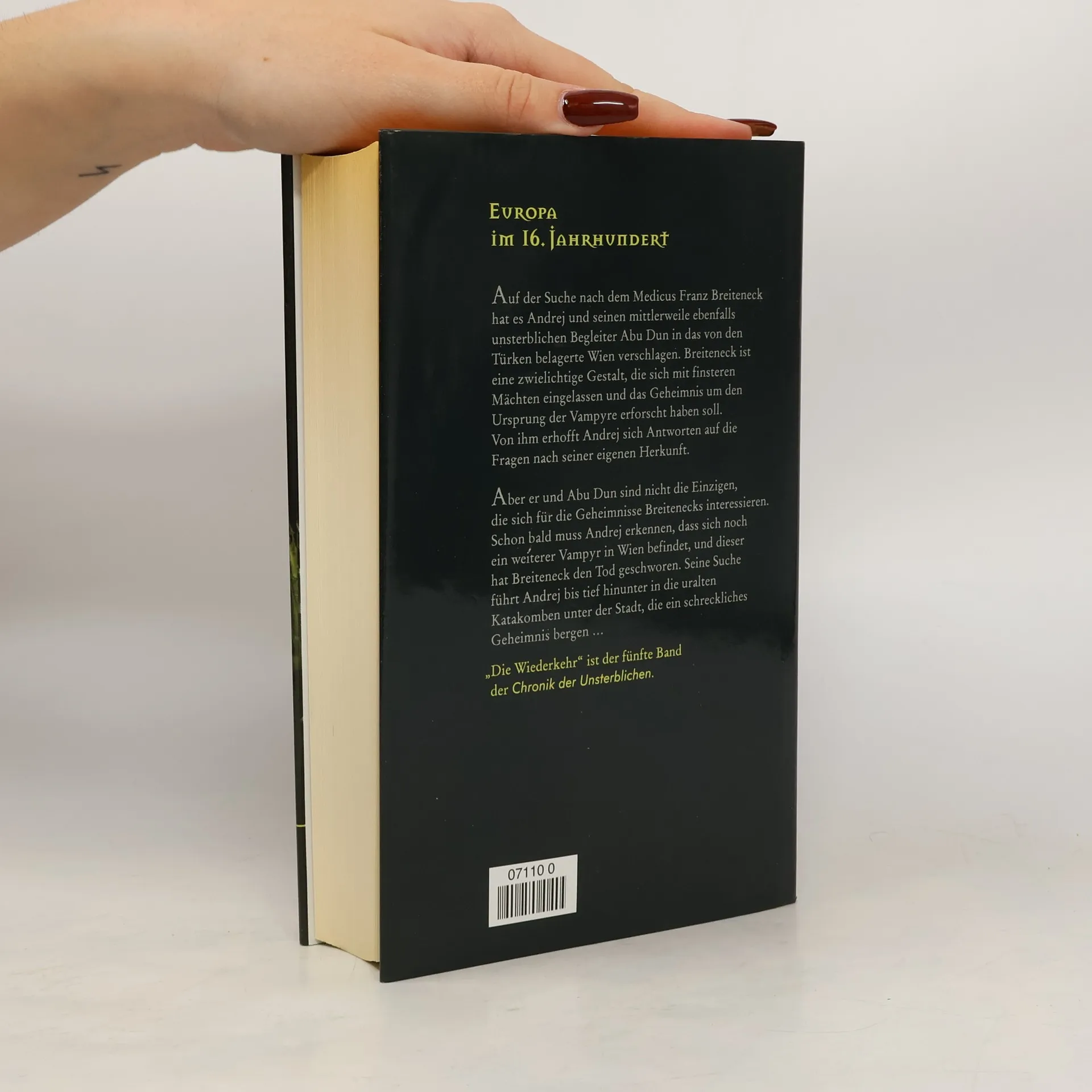 Forts. von: äDie Chronik der Unsterblichen - der Untergangä. - Im 5. Teil der Vampir-Saga hat es den Unsterblichen Andrej und seinen Begleiter Abu Dun in das von den Türken belagerte Wien verschlagen. Sie suchen den Medicus Breiteneck, der mit den finsteren Mächten im Bunde steht. Ihre Suche führt sie in die Katakomben unter der Stadt, die ein grausiges Geheimnis verbergen.