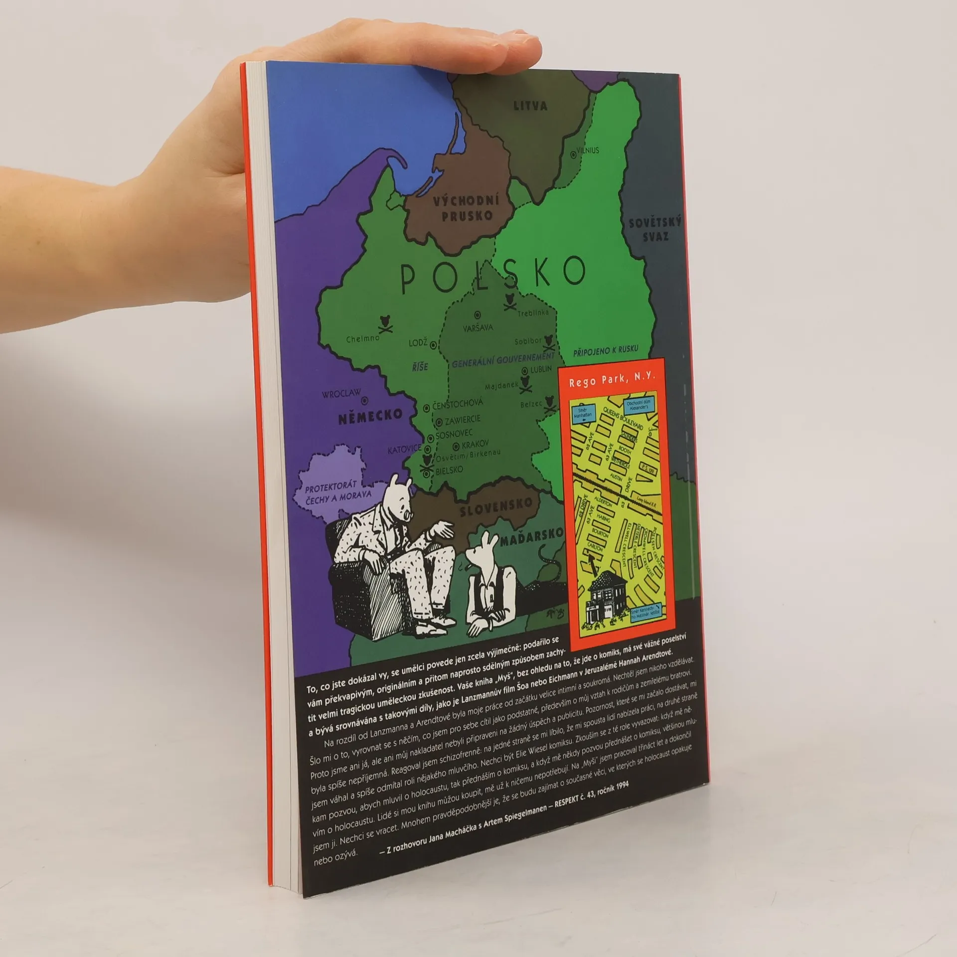 Maus je příběh Vladka Spiegelmana, Žida, který přežil holocaust, a jeho syna, kreslíře, který se snaží vyrovnat s otcem, jeho hrozivým příběhem i dějinami jako takovými. Knihu spojuje dva příběhy: jeden se odehrává v Polsku, druhý v Rego Parku v New Yorku. V prvním Spiegelmanův otec vypráví o tom, jak se svou ženou přežili Hitlerovu vládu v Evropě. Je to příběh plný smrti, neuvěřitelných úniků, vězeňské krutosti i lidské zrady. V druhém příběhu sledujeme autorův mučivý vztah k stárnoucímu otci. Občas se navštěvují, vedou malicherné hádky a v pozadí všeho jsou dějiny, příliš kruté na to, aby je bylo možno utišit. Obě příběhy se tak před námi spojují v příběh jediný - příběh rodičů a dětí. V prvním dílu sledujeme Spiegelmanovy rodiče až do bran Osvětimi a autora vyprávění na práh zoufalství.... celý text