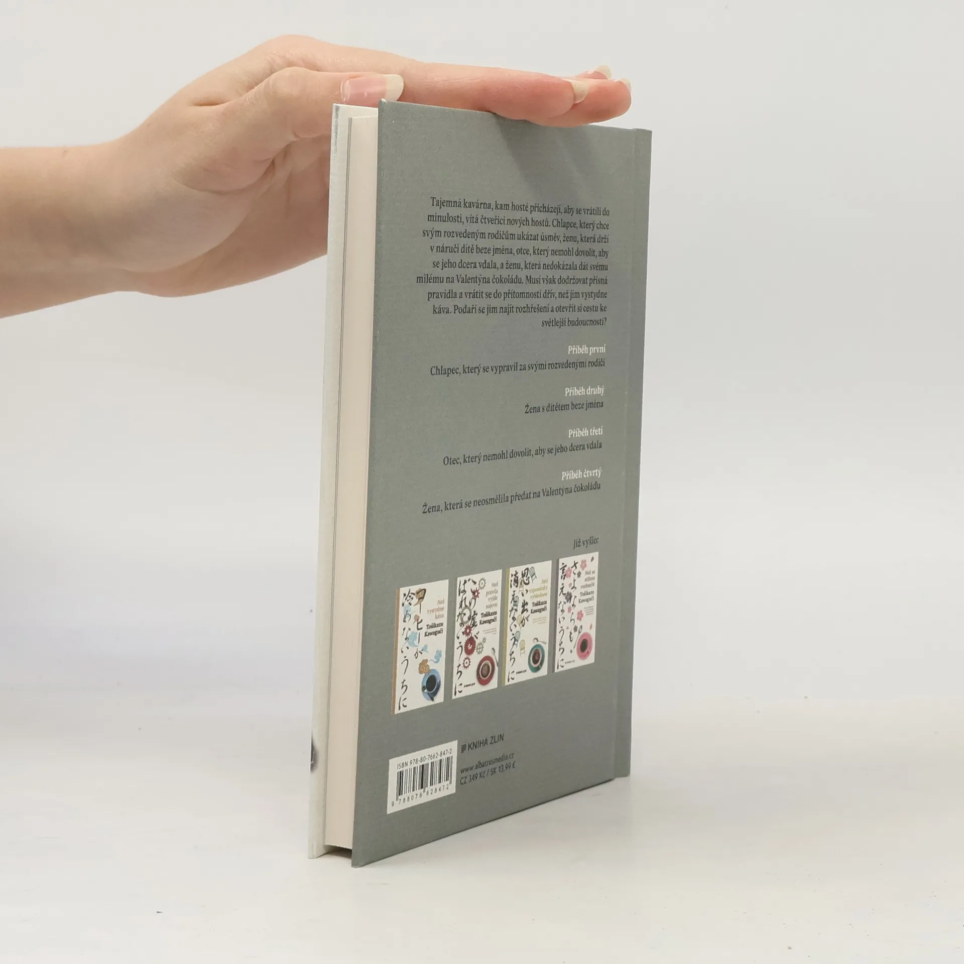 Pátý díl oblíbené série o kavárnách, které umožňují cestovat časem Tajemná kavárna, kam hosté přicházejí, aby se vrátili do minulosti, vítá čtveřici nových hostů. Chlapce, který chce svým rozvedeným rodičům ukázat úsměv, ženu, která drží v náručí dítě beze jména, otce, který nemohl dovolit, aby se jeho dcera vdala, a ženu, která nedokázala dát svému milému na Valentýna čokoládu. Musí však dodržovat přísná pravidla a vrátit se do přítomnosti dřív, než jim vystydne káva. Podaří se jim najít rozhřešení a otevřít si cestu ke světlejší budoucnosti? „V kavárně v jedné nejmenované čtvrti mají místo, o němž koluje podivná novodobá legenda. Když na ně usednete, můžete se vrátit v čase do doby, kterou si zvolíte. Musíte však přijmout několik nepříjemných, opravdu nepříjemných pravidel. Přesto přicházejí do kavárny stále další lidé, kteří se o této legendě doslechli.“