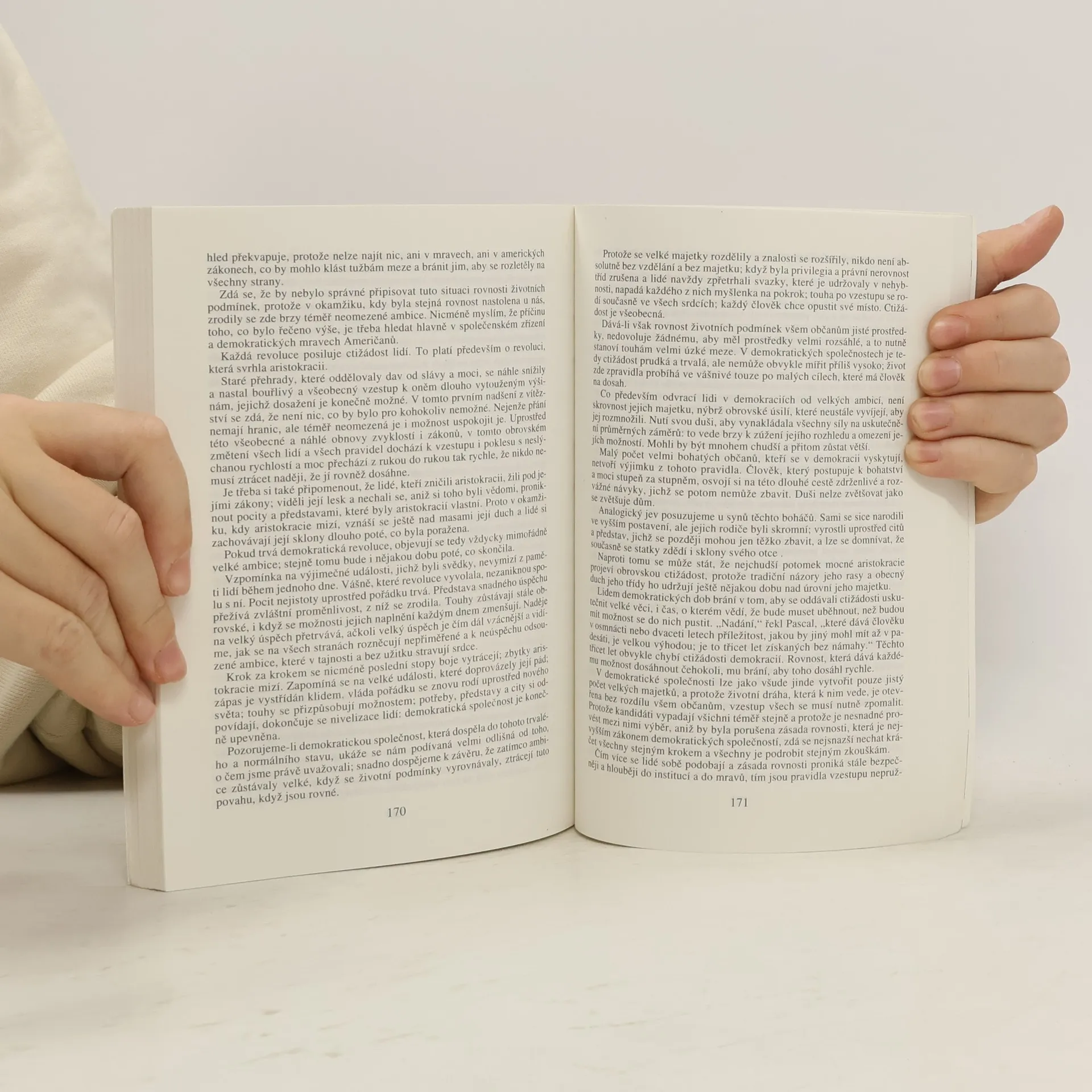 Alexis de Tocqueville ve svém proslaveném díle Demokracie v Americe (I. díl 1835, II. díl 1840) jako první pochopil rozporuplnou povahu rovnosti a demokracie, její tendenci "požírat samu sebe" standardizací podmínek i smýšlení až k jakési tyranii většinové průměrnosti, která limituje jedinečnost i kulturu a vede ke konformitě většiny. Předpovídal příchod tržního blahobytu, průmyslové oligarchie, zaopatřovacího pečovatelského státu i nesmyslného byrokratického plánování a směřování k centralizaci. Vystihl všechny podstatné hodnoty západní civilizace, především svár mezi svobodou a rovností i společenský význam náboženské víry, bez níž se ztrácí autorita a jejíž absence nakonec ohrožuje i samu politickou svobodu. Toto Tocquevillovo dílo, stejně prosté a srozumitelné svou esejistickou formou jako hluboké svým chápáním povahy člověka, společnosti a dějin, dodnes platí jako vzor analytické práce.... celý text