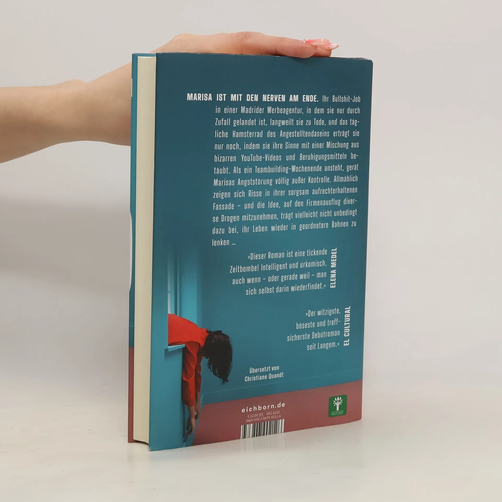 Marisa ist mit den Nerven am Ende. Ihr Bullshit-Job in einer Madrider Werbeagentur, in dem sie nur durch Zufall gelandet ist, langweilt sie zu Tode, und das tägliche Hamsterrad des Angestelltendaseins erträgt sie nur noch, indem sie ihre Sinne mit einer Mischung aus bizarren YouTube- Videos und Beruhigungsmitteln betäubt. Als ein Teambuilding-Wochenende ansteht, gerät Marisas Angststörung völlig außer Kontrolle. Allmählich zeigen sich Risse in ihrer sorgsam aufrechterhaltenen Fassade - und die Idee, auf den Firmenausflug diverse Drogen mitzunehmen, trägt vielleicht nicht unbedingt dazu bei, ihr Leben wieder in geordnetere Bahnen zu lenken ...