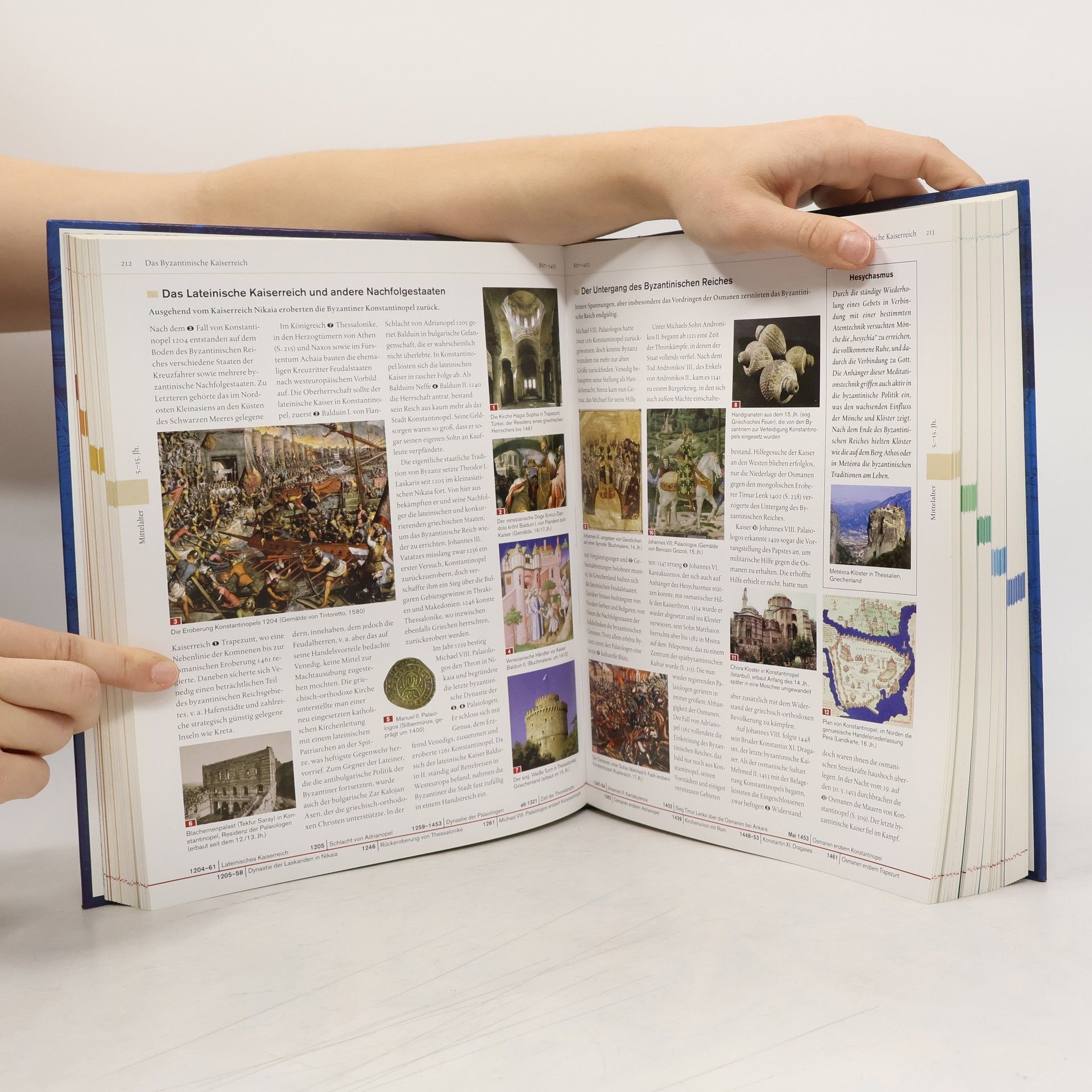 Ein kluger Mensch hat einmal gesagt, der erste Schritt zum Eweb von Wissen sei, zu erkennen, wie viel man nicht wisse.Dieses umfangreiche, reich bebilderte Werk stellt die Weltgeschichte von den Anfängen der Zivilisation bis in das 21. Jahrhundert anschaulich dar. Kultur-, Sozial- und Militärgeschichte werden in direkten Bezug zueinander gesetzt, sodass eine vielseitige und lebendige Wiedergabe weltgeschichtlicher Ereignisse entsteht.Hunderte von Werken der bildenden Kunst, des Kunsthandwerks und der Architektur legen ein beeindruckendes Zeugnis von den kulturellen Leistungen der Menschheit ab.Eine Zeitleiste mit Schlüsselereignissen und den wichtigsten Namen und Daten durchzieht das gesamte Buch.