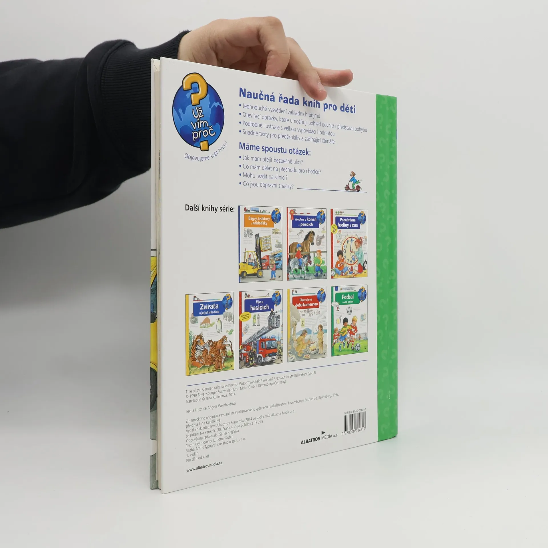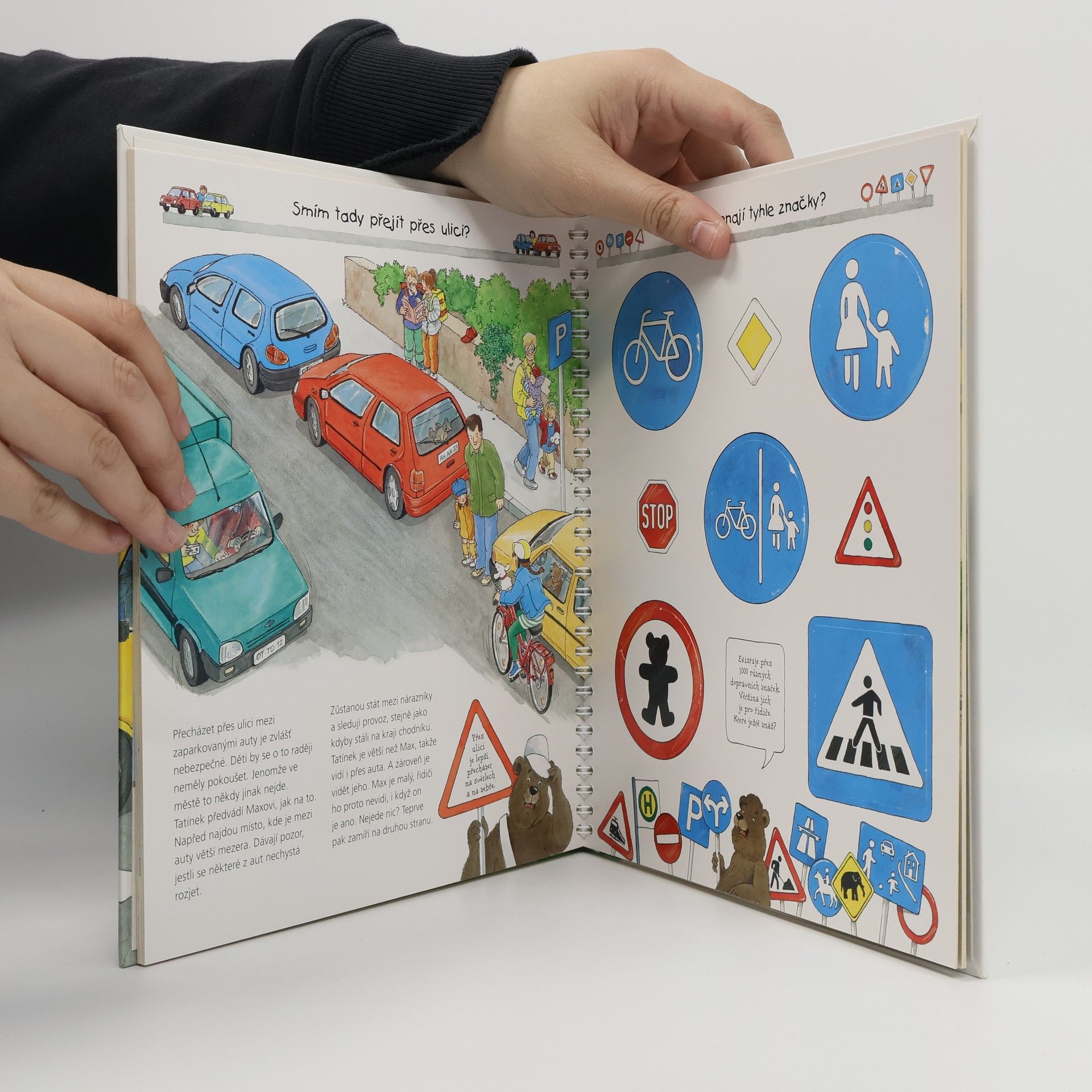 Další z populární řady knih pro nejmenší vysvětluje tentokrát dětem, jak se mají chovat na ulici, chodníku nebo silnici, seznámí je se základními dopravními značkami – to vše opět názorným způsobem – propojením textu s ilustracemi a otevíracími okénky.