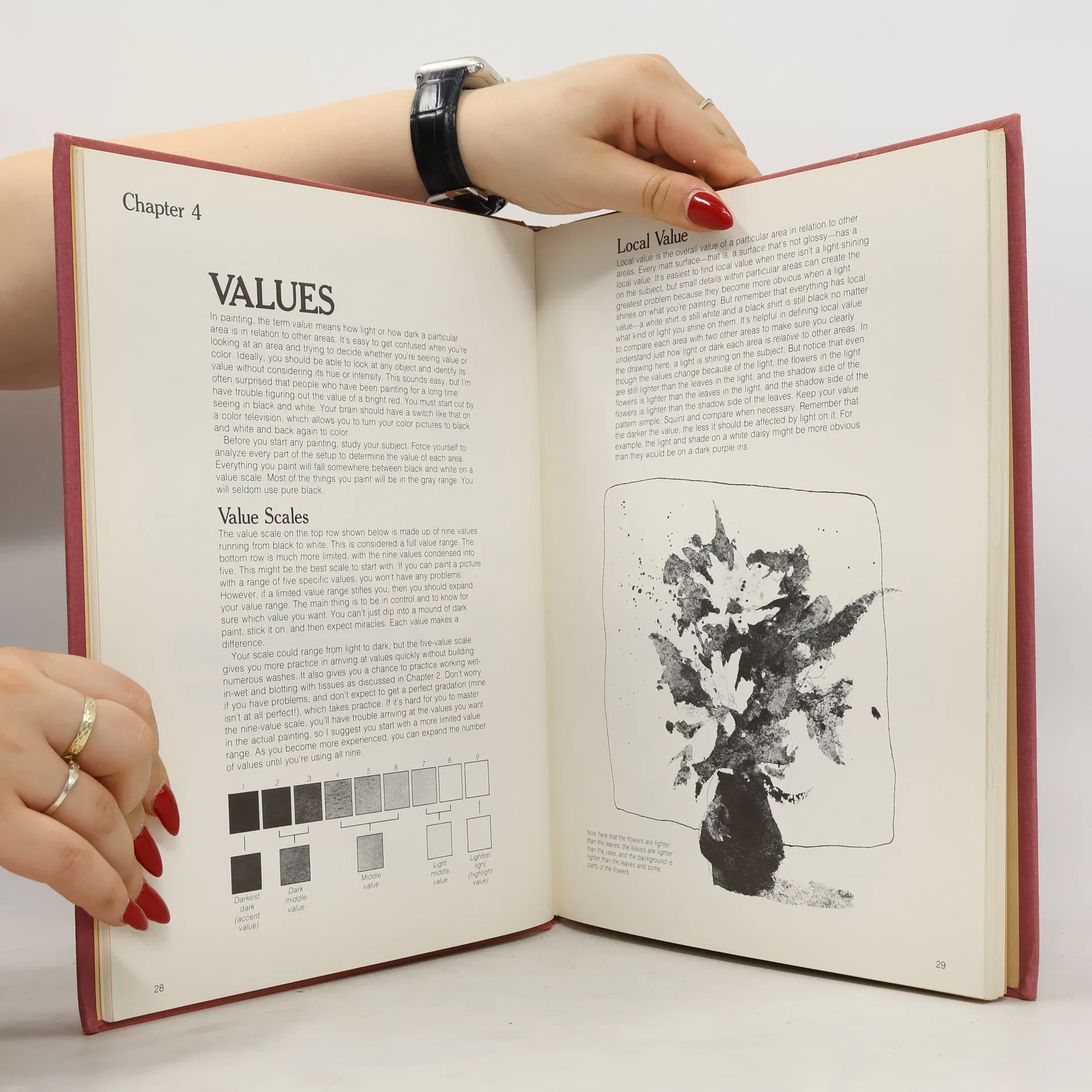 This is a book on teaching you how to paint flowers with watercolor. It talks about materials, equipment, composition. direct painting, drybrush, using opaque, wash-over-wash, different types of flowers, lighting etc.--