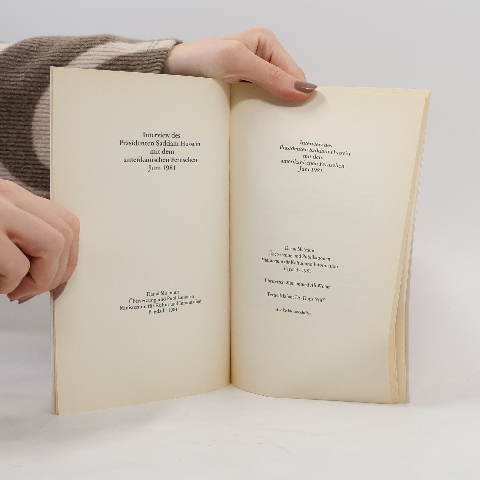 Interview des Präsidenten Saddam Hussein mit dem amerikanischen Fernsehen, Collectif d'auteurs