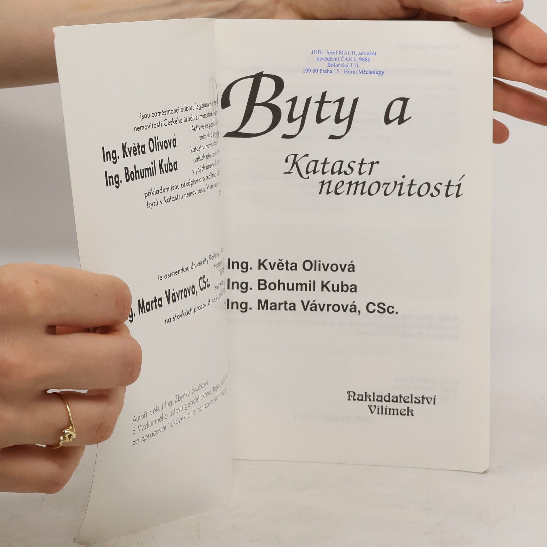 Byty a katastr nemovitostí, Květa Olivová, Bohumil Kuba, Marta Vávrová