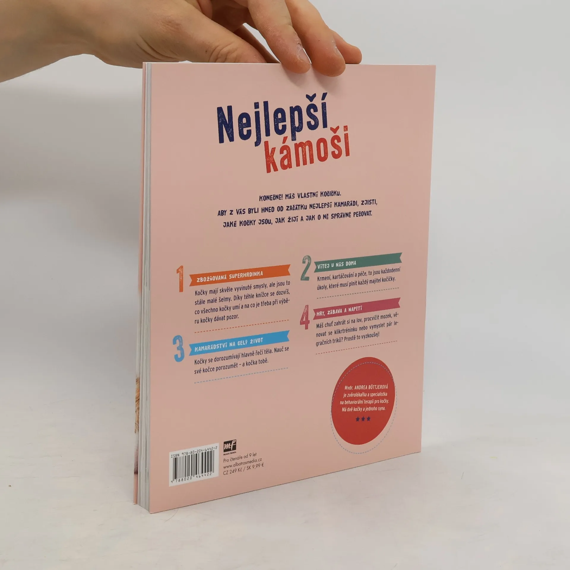 Čtyřnohý přírustek do rodiny? Které dítě by nechtělo, na rozdíl od zdráhavých rodičů, mít doma nějaké zvířátko? A když konečně povolí, děti jsou nadšené, chtějí se mazlit, hrát si a pečovat o svého miláčka. Tahle knížka vám pomůže, aby všechno proběhlo bez problémů. Dětise v ní hravou formou dozvědí spoustu zajímavých informací, ať už o historii koček, řeči jejich těla nebo jak kočičku vycvičit. A stanou se z nich ti nejlepší parťáci.