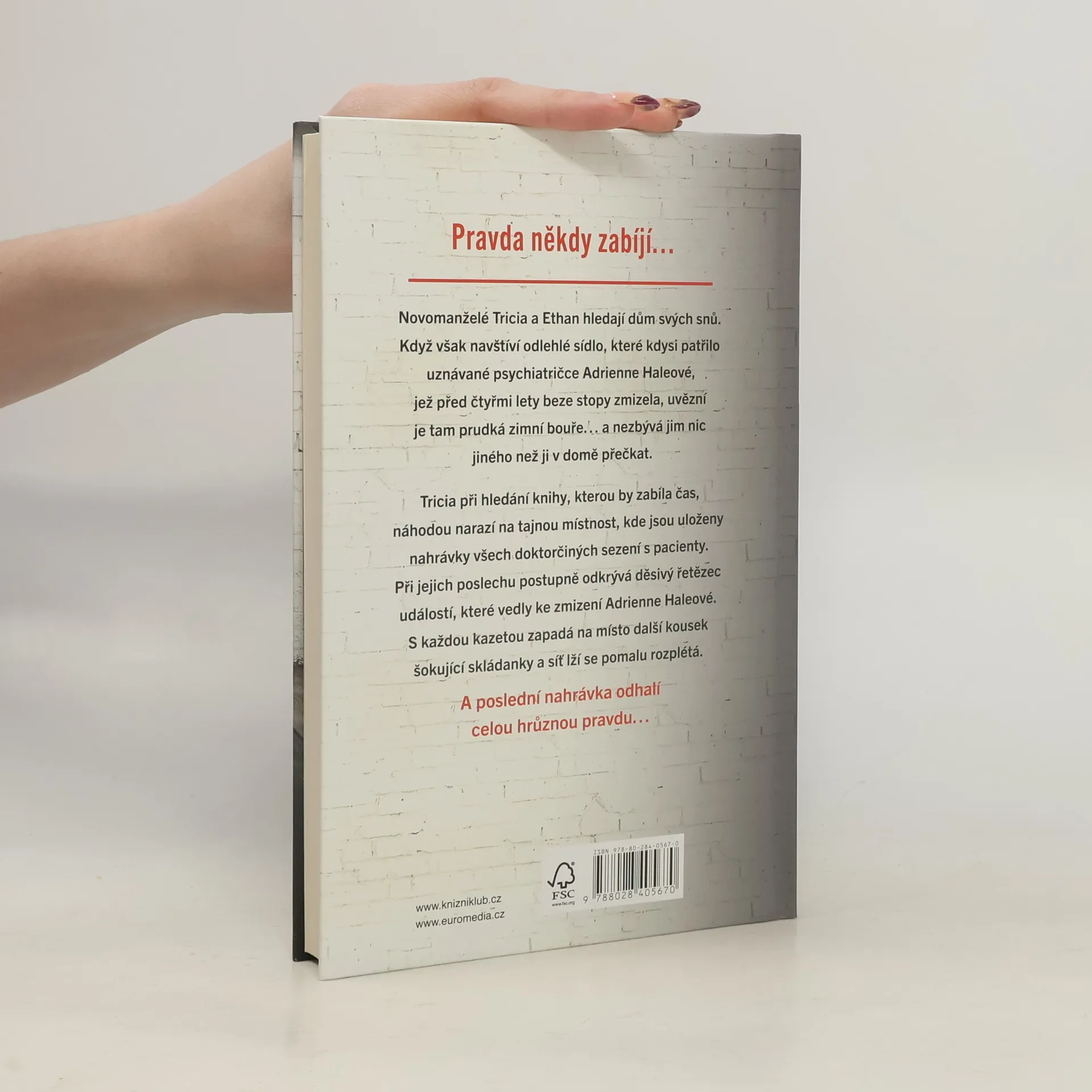 Novomanželé Tricia a Ethan hledají dům svých snů. Když však navštíví odlehlé sídlo, které kdysi patřilo uznávané psychiatričce Adrienne Haleové, jež před čtyřmi lety beze stopy zmizela, uvězní je tam prudká zimní bouře… a nezbývá jim nic jiného než ji v domě přečkat. Tricia náhodou narazí na tajnou místnost, kde jsou uloženy nahrávky všech doktorčiných sezení s pacienty. Při jejich poslechu postupně odkrývá děsivý řetězec událostí, které vedly ke zmizení doktorky Haleové. S každou kazetou zapadá na místo další kousek šokující skládanky a síť lží se pomalu rozplétá. A poslední nahrávka odhalí celou hrůznou pravdu.