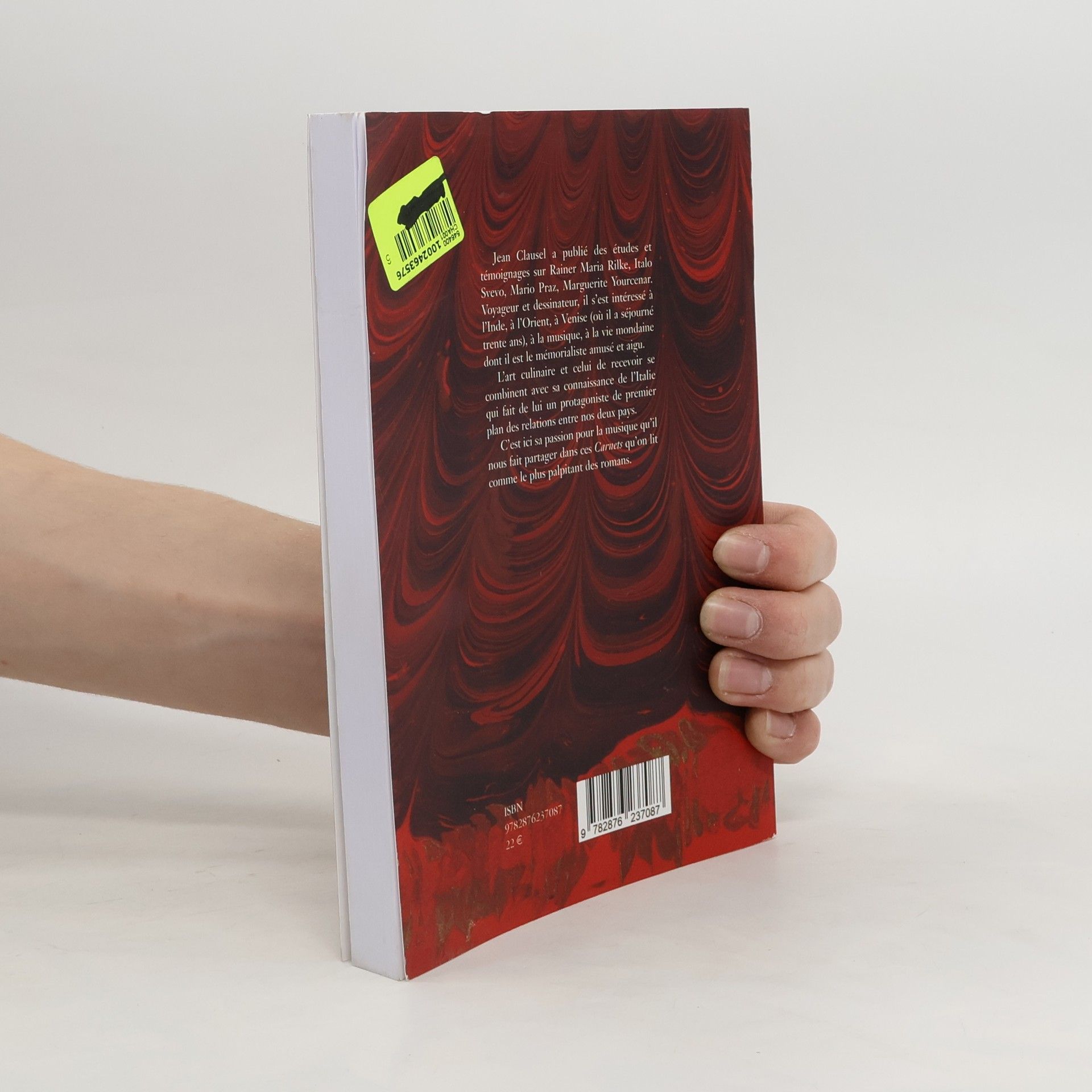 "Jean Clausel a publié des études et témoignages sur Rainer Maria Rilke, Italo Svevo, Mario Praz, Marguerite Yourcenar. Voyageur et dessinateur, il s'est intéressé à l'Inde, à l'Orient, à Venise (où il a séjourné trente ans), à la musique, à la vie mondaine dont il est le mémorialiste amusé et aigu. L'art culinaire et celui de recevoir se combinent avec sa connaissance de l'Italie qui fait de lui un protagoniste de premier plan des relations entre nos deux pays. C'est ici sa passion pour la musique qu'il nous fait partager dans ces Carnets qu'on lit comme le plus palpitant des romans"--Page 4 of cover