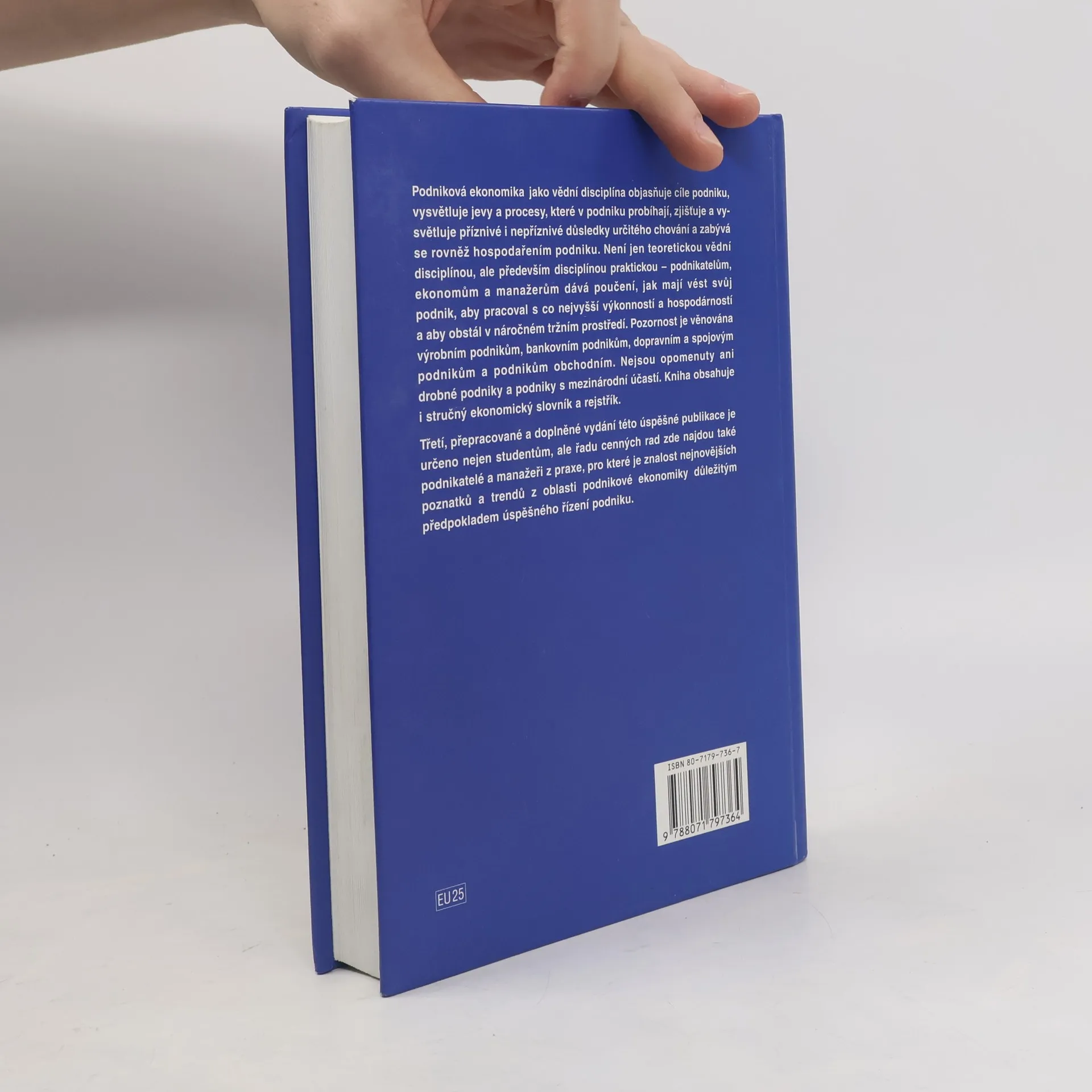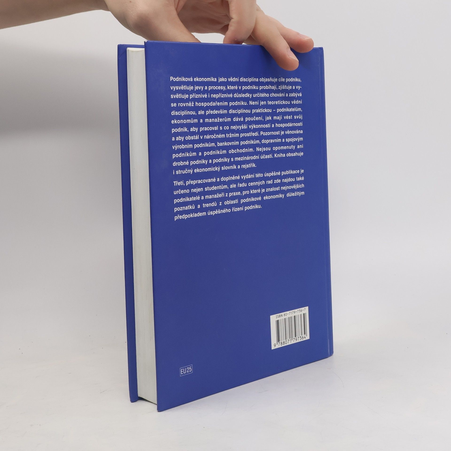 Druhé vydání úspěšné publikace, vedené prof. M. Synkem, bylo schváleno jako vysokoškolská učebnice. Podniková ekonomika jako vědní disciplína objasňuje cíle podniku, procesy v něm probíhající a hospodaření. Vychází z obecné ekonomické teorie a čerpá z dalších disciplín, jako je teorie řízení, statistika, finance a účetnictví. Je praktickou disciplínou, která poskytuje podnikatelům a manažerům rady, jak dosáhnout vysoké výkonnosti a hospodárnosti v náročném tržním prostředí. Text je rozdělen do čtyř oddílů. První se zaměřuje na podstatu podniku, jeho okolí, cíle a funkce, měření efektivnosti a typologii podniků, včetně nových ukazatelů hodnocení, jako jsou EVA a MVA. Druhý oddíl se věnuje majetkové, kapitálové a organizační struktuře podniku. Následující část vysvětluje podnikové činnosti, jako je řízení, výroba a účetnictví. Čtvrtý oddíl se zaměřuje na specifika jednotlivých odvětví, včetně výrobních, bankovních, dopravních a obchodních podniků, a nezapomíná ani na drobné podniky a podniky s mezinárodní účastí. Publikace je určena nejen studentům, ale také ekonomům, manažerům a podnikatelům, kteří hledají cenné a praktické rady v oblasti podnikové ekonomiky. Obsahuje také stručný ekonomický slovník a rejstřík použitých termínů.