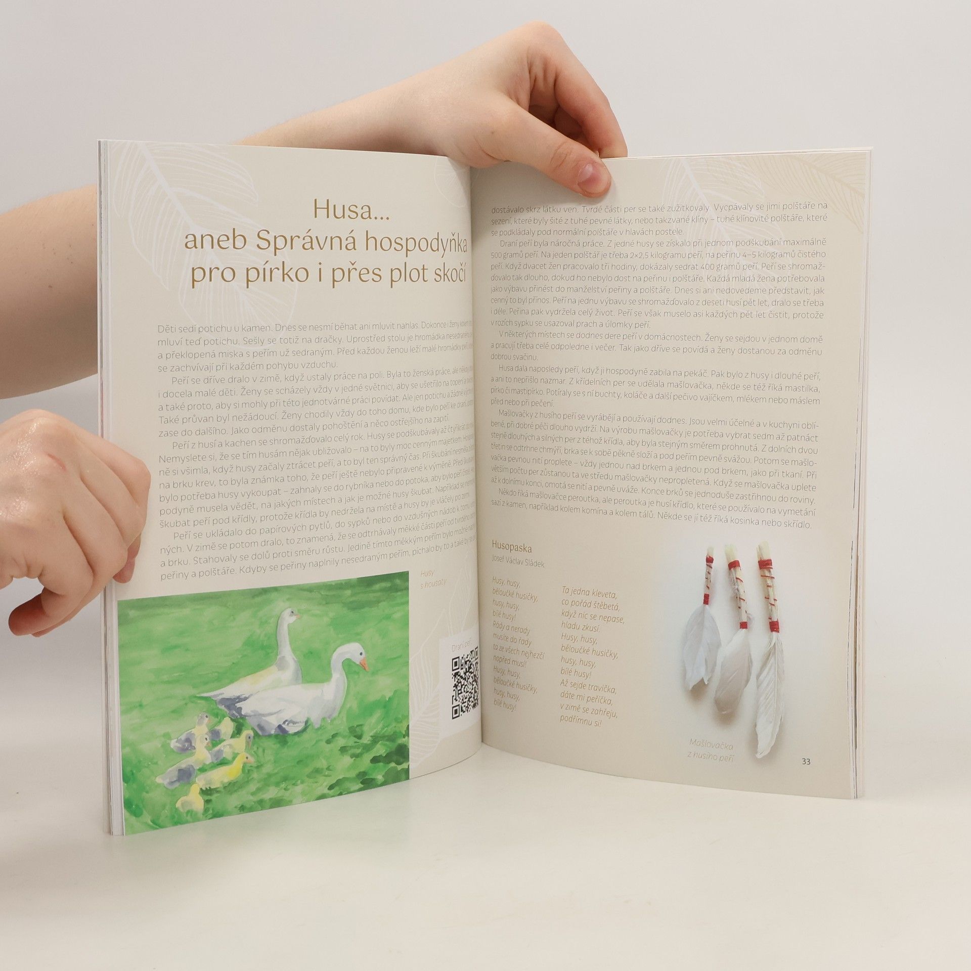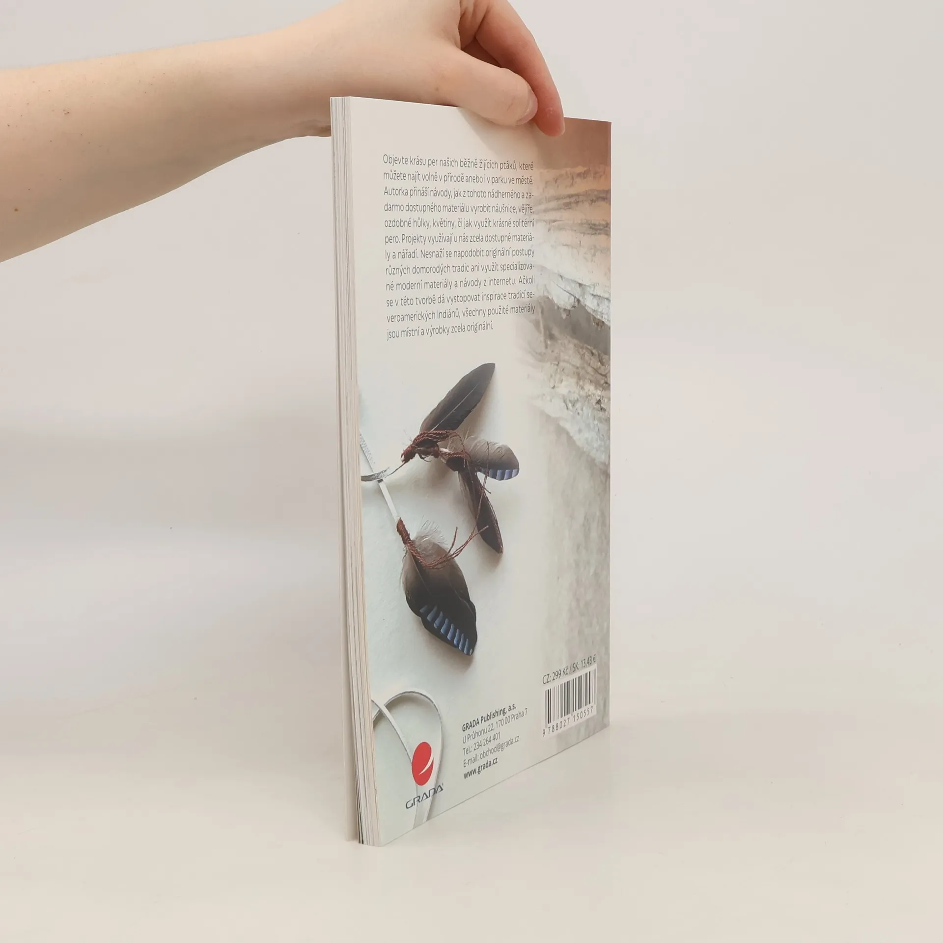 Objevte krásu per našich běžně žijících ptáků, které můžete najít volně v přírodě anebo i v parku ve městě. Autorka přináší návody, jak z tohoto nádherného a zadarmo dostupného materiálu vyrobit náušnice, vějíře, ozdobné hůlky, květiny či jak využít krásné solitérní pero. Projekty využívají u nás běžně dostupné materiály a pomůcky. Nesnaží se napodobit originální postupy různých domorodých tradic ani využít specializované moderní materiály a návody z internetu. Ačkoli se v této tvorbě dá vystopovat inspirace tradicí severoamerických Indiánů, všechny použité materiály jsou místní a výrobky zcela originální.