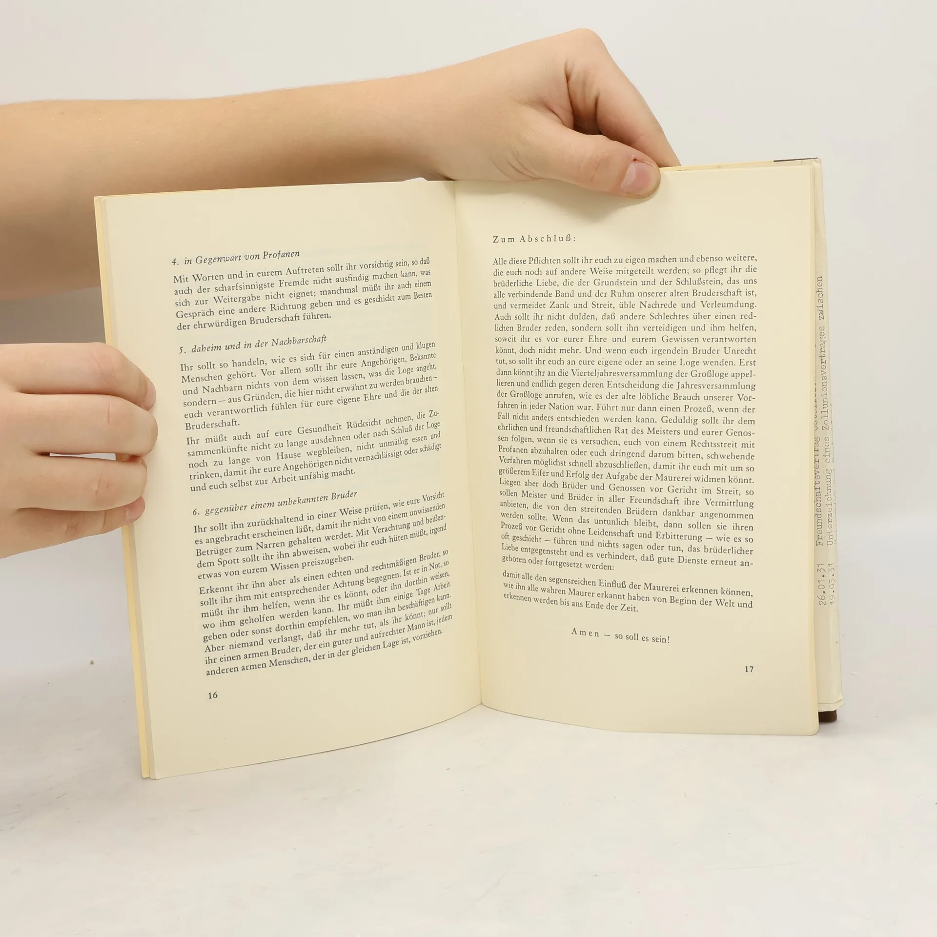Die alten Pflichten von 1723 [siebzehnhundertdreiundzwanzig]