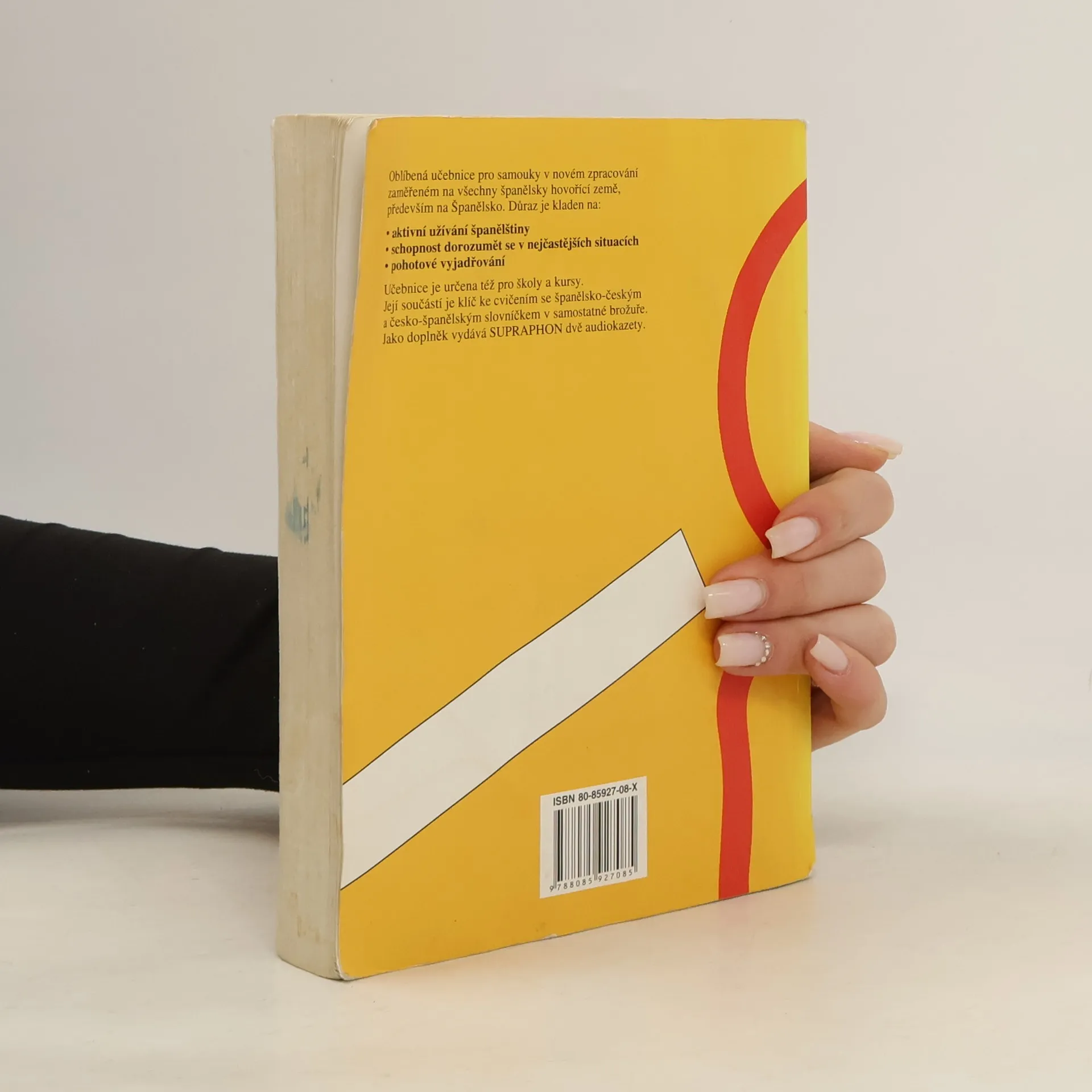 Oblíbená učebnice pro samouky v novém zpracování zaměřené na všechny španělsky hovořící země, především na Španělsko. Důraz je kladen na: . aktivní užívání španělštiny . schopnost dorozumět se v nejčastějších situacích . pohotové vyjadřování Učebnice je určena též pro školy a kursy. Její součástí je brožura obsahující klíč ke cvičením (119 s.) se španělsko-českým a česko-španělským slovníčkem. Jako samostatný doplněk k učebnici vydává Supraphon audionahrávku.
