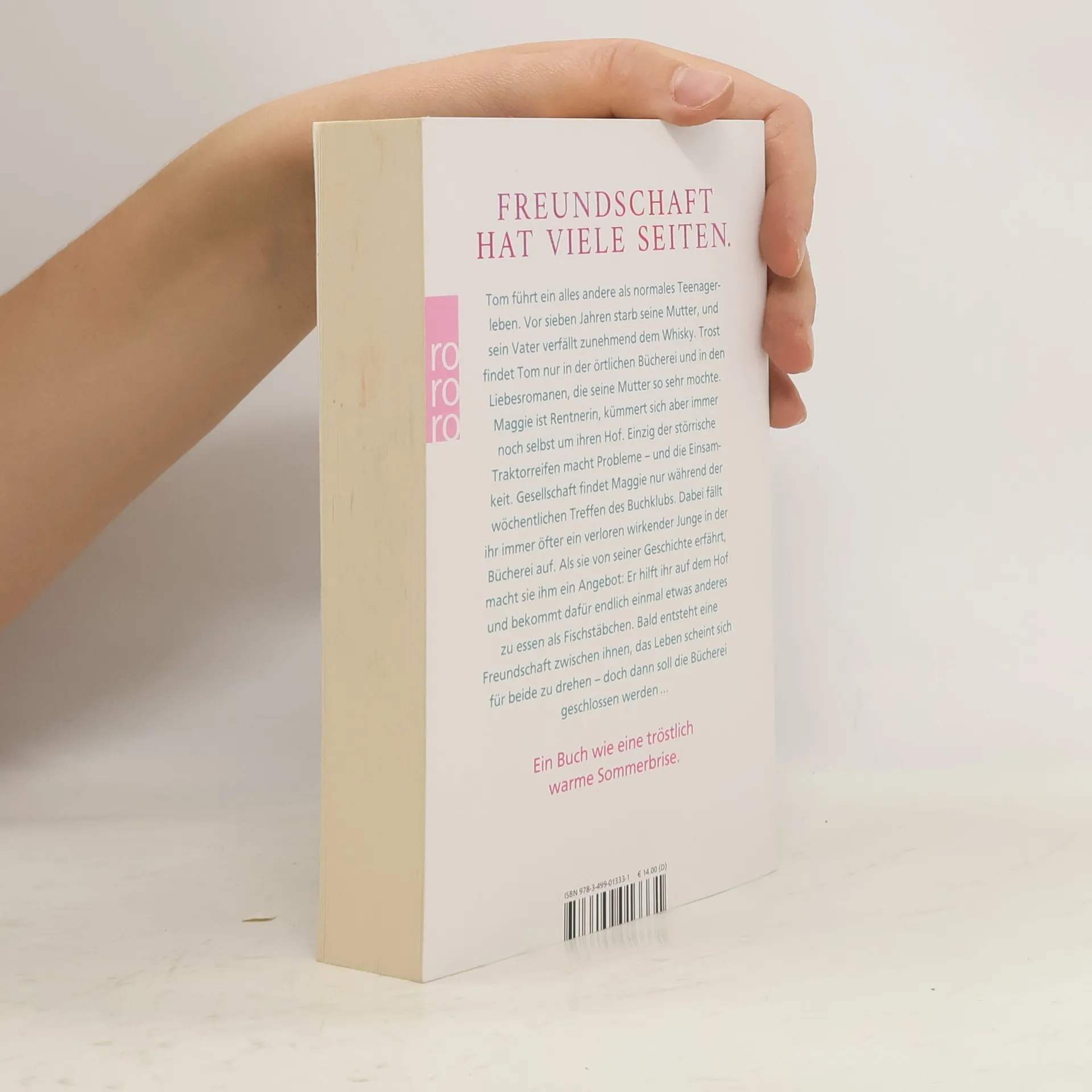 Mit einem Freund an der einen und einem guten Buch in der anderen Hand lassen sich auch die schwierigsten Zeiten im Leben meistern!Tom führt ein alles andere als normales Teenagerleben. Vor sieben Jahren starb seine Mutter, und sein Vater verfällt zunehmend dem Whisky. Trost findet Tom nur in der örtlichen Bücherei und in den Büchern, meist Romanzen, die seine Mutter so sehr mochte. Das darf natürlich niemand wissen, vor allem nicht die coole Farah aus der Schule, die ebenfalls oft Bücher ausleiht.Maggie ist Rentnerin, bestellt ihren Hof aber noch immer selbst. Nur der störrische Traktorreifen macht Probleme. Wenn sie Gesellschaft sucht, nimmt sie an den Buchclub-Treffen in der Bücherei teil. Seit einiger Zeit fällt ihr bei diesen Zusammenkünften ein verloren wirkender Junge auf. Als sie von seiner Geschichte erfährt, macht sie ihm ein Angebot: Er hilft ihr auf dem Hof und bekommt dafür endlich einmal etwas anderes zu essen als Fischstäbchen.Bald entsteht eine Freundschaft zwischen ihnen, alles könnte wunderbar sein – doch dann soll die Bücherei geschlossen werden. Gemeinsam mit Farah und dem Buchclub schmieden Tom und Maggie einen Plan, um ihren Lieblingsort zu retten.