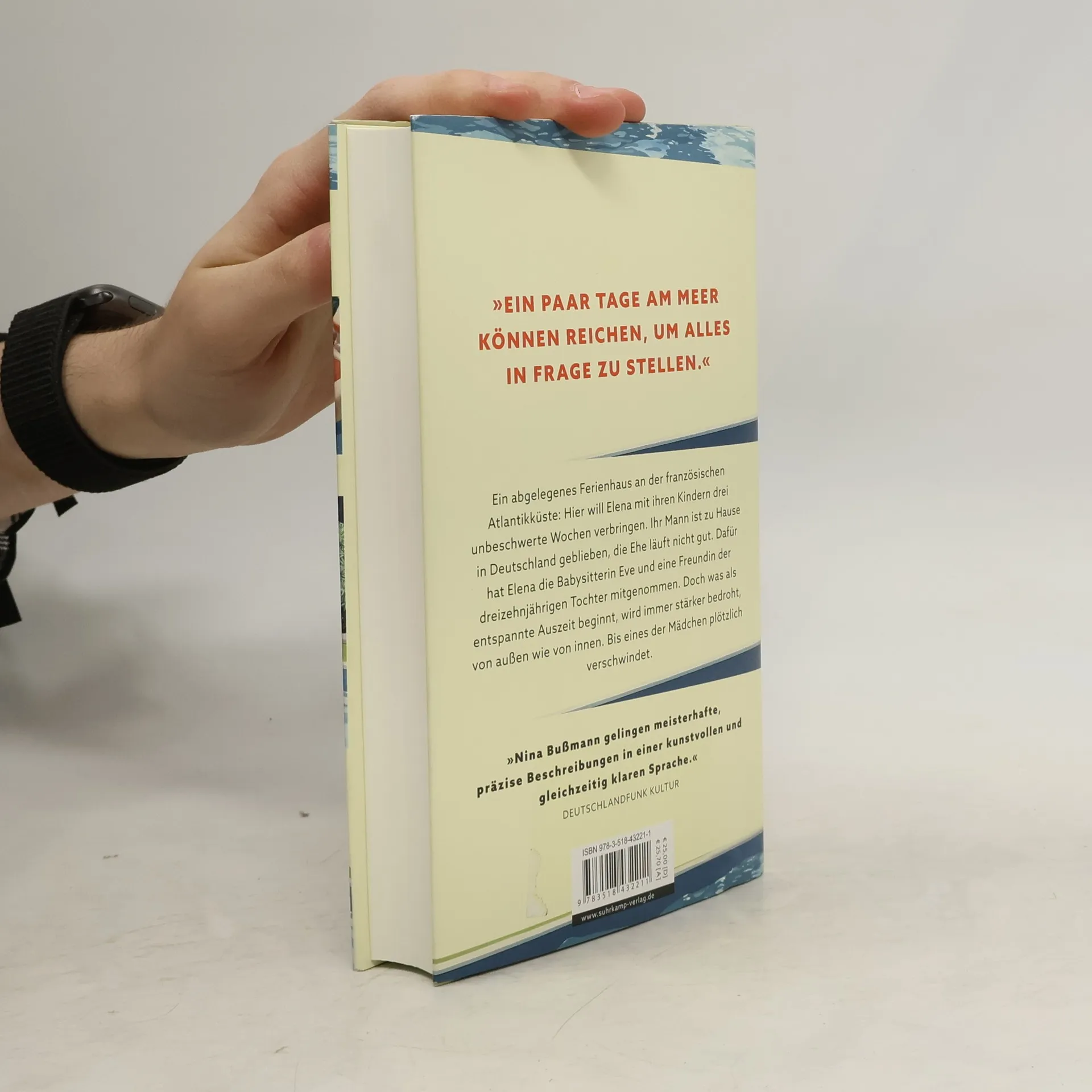 »Ein paar Tage am Meer können reichen, um alles in Frage zu stellen.« Ein abgelegenes Ferienhaus an der französischen Atlantikküste: Hier will Elena mit ihren Kindern drei unbeschwerte Wochen verbringen. Ihr Mann ist zu Hause in Deutschland geblieben, die Ehe läuft nicht gut. Dafür hat Elena die Babysitterin Eve und eine Freundin der dreizehnjährigen Tochter eingeladen. Doch was als entspannte Auszeit beginnt, wird immer stärker bedroht, von außen wie von innen: Die ausgetrockneten Wälder stehen in Flammen, unangekündigte Gäste tauchen auf, Konflikte spitzen sich zu – befeuert von Eifersucht, Misstrauen und Abhängigkeiten. Bis eines der Mädchen plötzlich verschwindet. Drei Wochen im August ist ein intensives Kammerspiel in der Hitze des Sommers. Alles scheint harmonisch, aber die Abgründe lauern im Idyll. Eine unbedachte Bemerkung, eine falsche Verdächtigung, und das komplexe Beziehungsgeflecht droht zu zerreißen. Davon erzählt Nina Bußmann mit großer psychologischer Klugheit und einem feinen Gespür für Spannung.