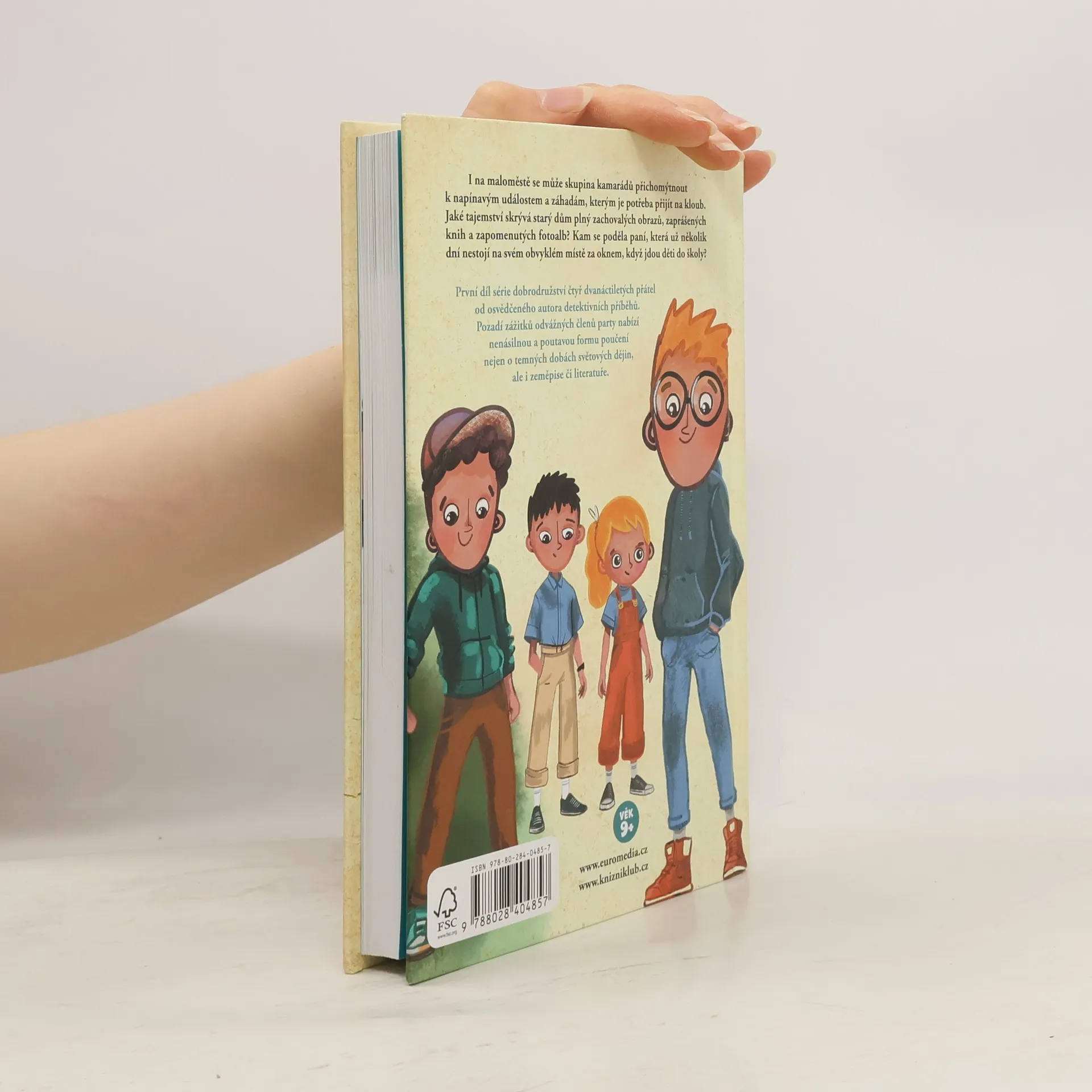 I na maloměstě se může skupina kamarádů přichomýtnout k napínavým událostem a záhadám, kterým je potřeba přijít na kloub. Jaké tajemství skrývá starý dům plný zachovalých obrazů, zaprášených knih a zapomenutých fotoalb? Kam se poděla paní, která už několik dní nestojí na svém obvyklém místě za oknem, když jdou děti do školy? První díl série dobrodružství čtyř dvanáctiletých přátel od osvědčeného autora detektivních příběhů. Pozadí zážitků odvážných členů party nabízí nenásilnou a poutavou formu poučení nejen o temných dobách světových dějin, ale i zeměpise či literatuře.
