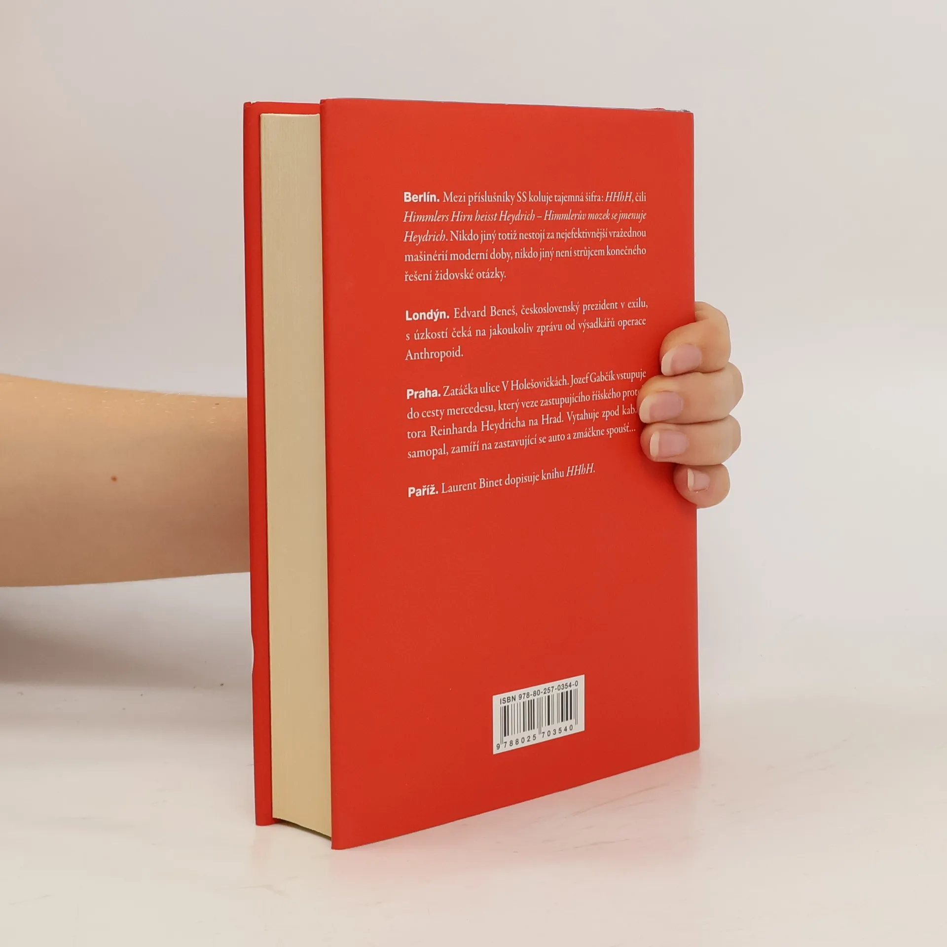 Je květen 1942 a výsadkáři Jozef Gabčík a Jan Kubiš se připravují na cíl operace Anthropoid: zabít Reinharda Heydricha, zastupujícího říšského protektora Protektorátu Čechy a Morava, „pražského kata“ a „blonďatou bestii“. Druhého nejvyššího muže v hierarchii SS provází šeptem pronášená tajemná zkratka HHhH: Himmlers Hirn heißt Heydrich – Himmlerův mozek se jmenuje Heydrich. Ne nadarmo – Heydrich totiž patří k hlavním organizátorům židovského holocaustu neboli Endlösungu... Strhující prvotina francouzského spisovatele Laurenta Bineta, který dlouho pobýval na Slovensku a v Česku, barvitě vykresluje okolnosti „nejodvážnějšího protinacistického činu v dějinách druhé světové války“ a novátorsky v něm zkoumá vztah mezi realitou a fikcí.