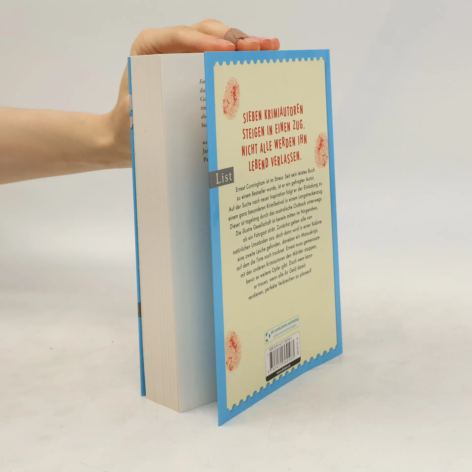 Sieben Krimiautoren steigen in einen Zug. Nicht alle werden ihn lebend verlassen. Ernest Cunningham ist im Stress: Seit sein letztes Buch zu einem Bestseller wurde, ist er ein gefragter Autor. Auf der Suche nach neuer Inspiration folgt er der Einladung zu einem ganz besonderen Krimifestival in einem Langstreckenzug. Dieser ist tagelang durch das australische Outback unterwegs. Die illustre Gesellschaft ist bereits mitten im Nirgendwo, als ein Fahrgast stirbt. Zunächst gehen alle von natürlichen Umständen aus, doch dann wird in einer Kabine eine zweite Leiche gefunden, daneben ein Manuskript, auf dem die Tinte noch trocknet. Ernest muss gemeinsam mit den anderen Krimiautoren den Mörder stoppen, bevor es weitere Opfer gibt. Doch wem kann er trauen, wenn alle ihr Geld damit verdienen, perfekte Verbrechen zu planen? Eine Verneigung vor der Queen der klassischen Kriminalliteratur, ein Locked Room-Krimi – in jedem Fall ein großes Lesevergnügen für alle Fans von "Mord im Orientexpress", "Knives Out" und "Glass Onion".
