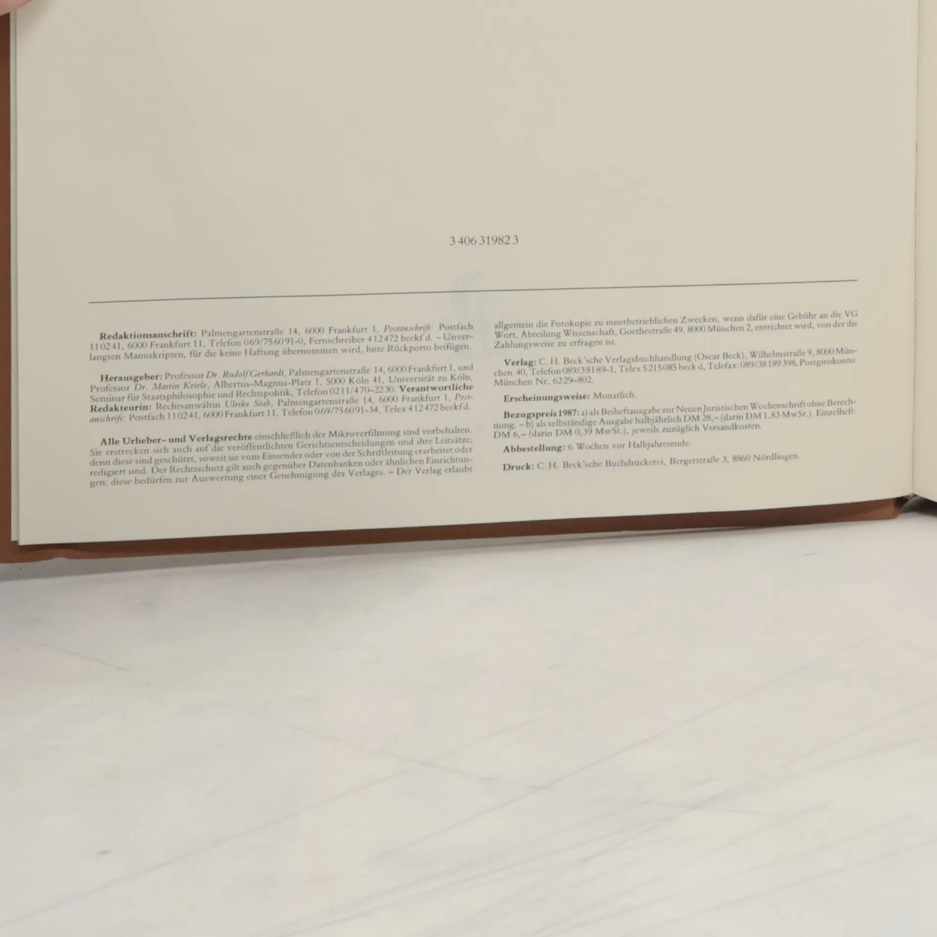 Neue juristische Wochenschrift. 40 Jahrgang 1987 Band 1. I-CXX/1-1576, Collectif d'auteurs