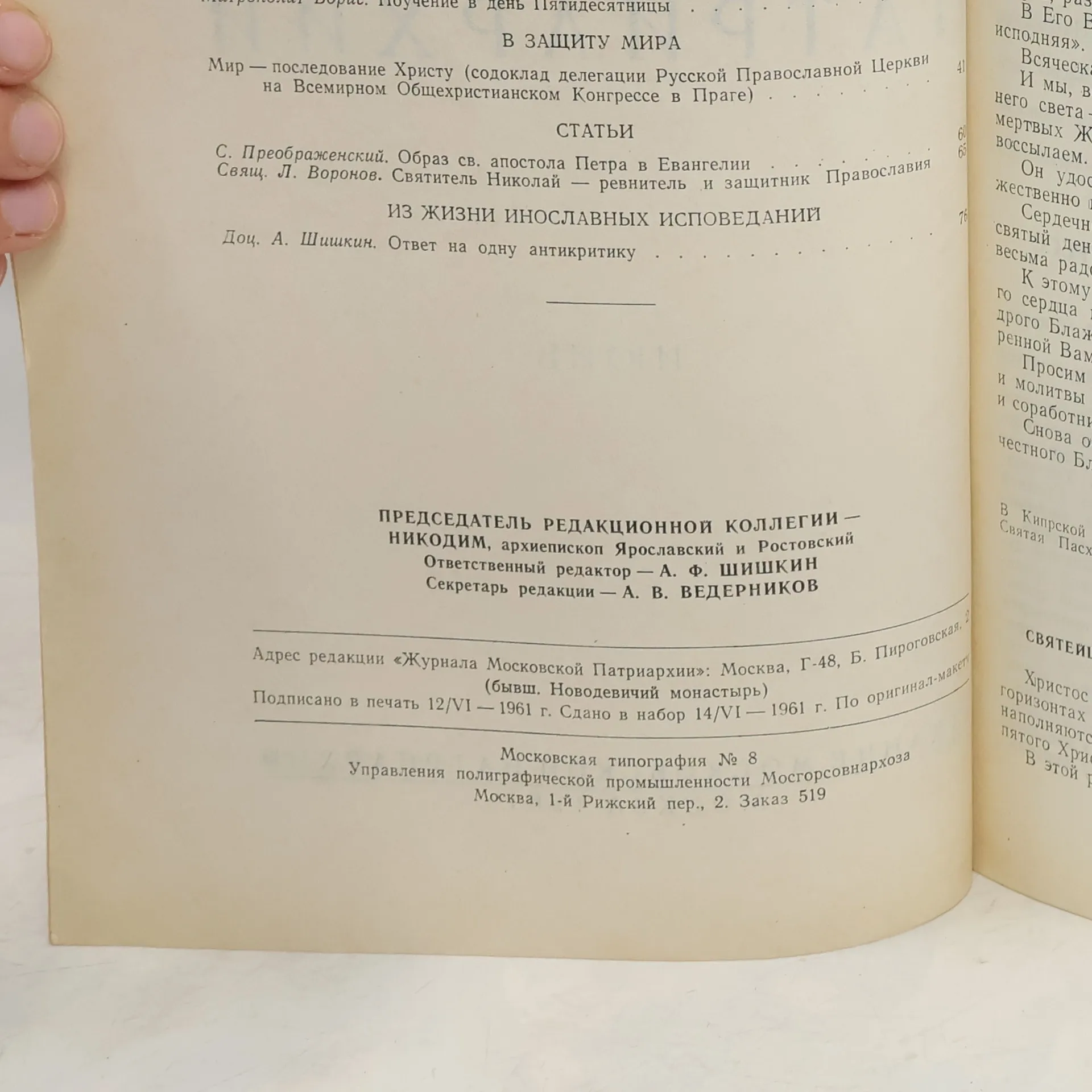 Журнал московской патриархии 6/1961