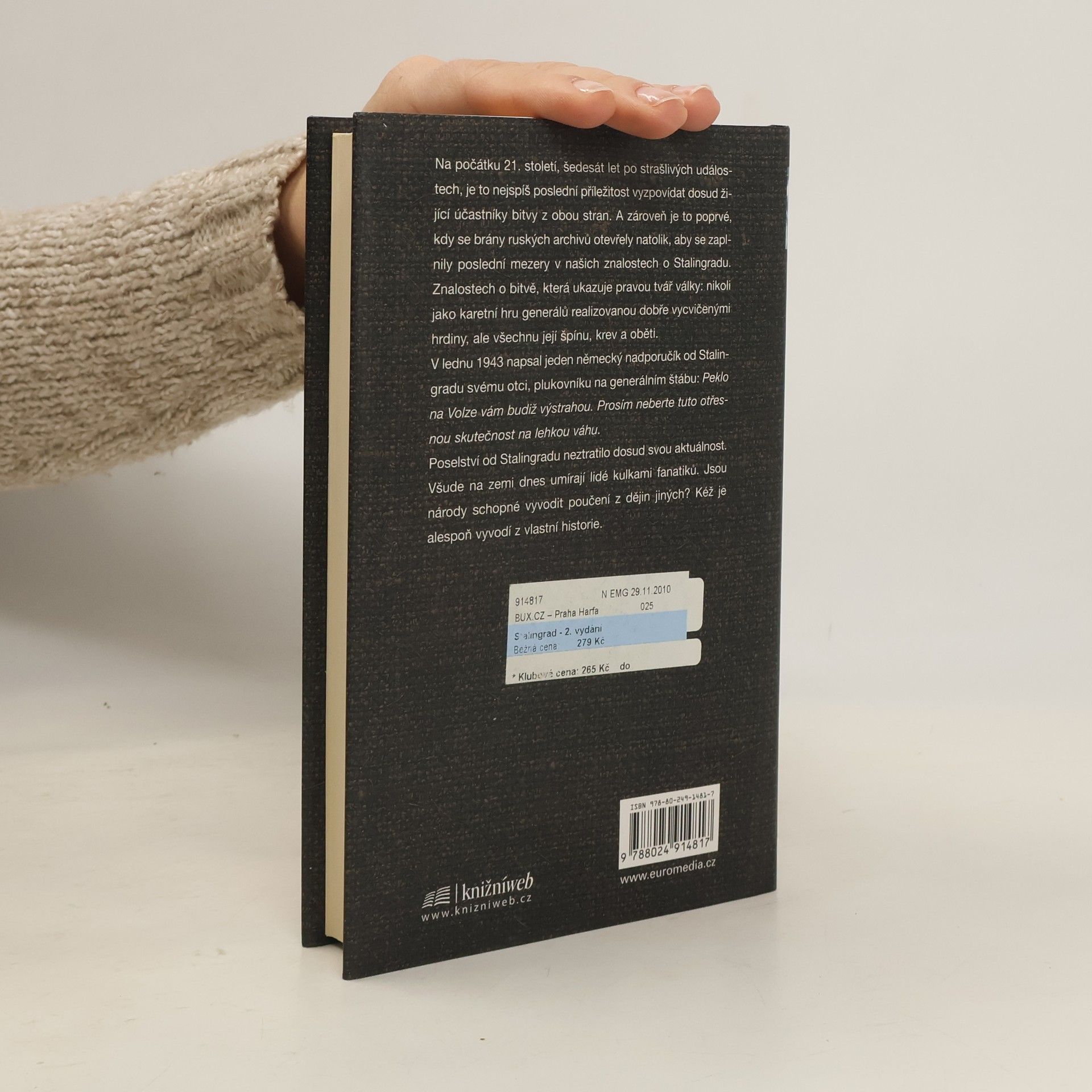 Na počátku 21. století, šedesát let po strašlivých událostech, je to nejspíš poslední příležitost vyzpovídat dosud žijící účastníky bitvy z obou stran. A zároveň je to poprvé, kdy se brány ruských archivů otevřely natolik, aby se zaplnily poslední mezery v našich znalostech o Stalingradu. Znalostech o bitvě, která ukazuje pravou tvář války: nikoli jako karetní hru generálů realizovanou dobře vycvičenými hrdiny, ale všechnu její špínu, krev a oběti. V lednu 1943 napsal jeden německý nadporučík od Stalingradu svému otci, plukovníku na generálním štábu: Peklo na Volze vám budiž výstrahou. Prosím neberte tuto otřesnou skutečností na lehkou váhu. Poselství od Stalingradu neztratilo dosud svou aktuálnost. Všude na zemi dnes umírají lidé kulkami fanatiků. Jsou národy schopné vyvodit poučení z dějin jiných? Kéž je alespoň vyvodí z vlastní historie. Vydání 2.