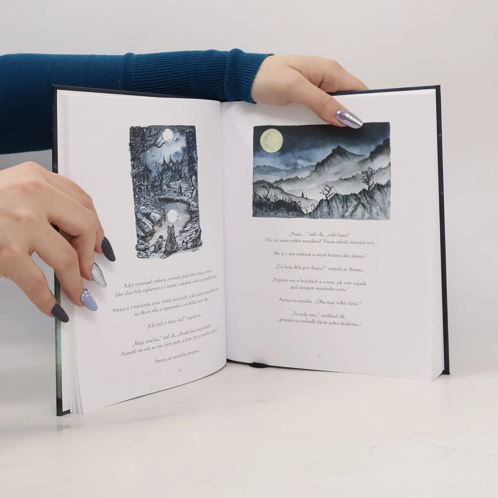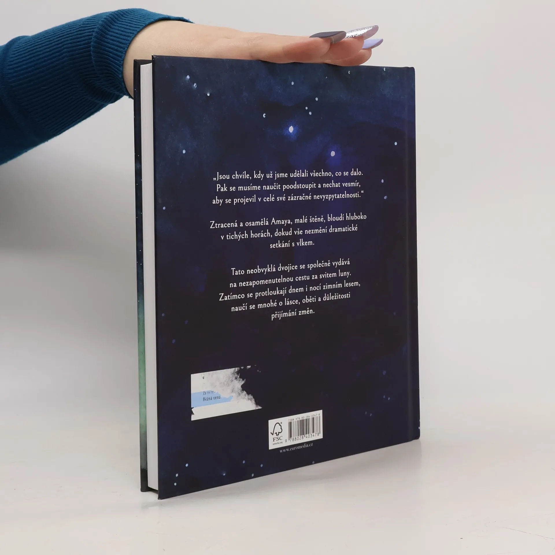 Štěně Amaya se ztratí ve strašlivé sněhové bouři. Samotinká bloudí uprostřed tichých hor a hledá své rodiče. Pak ale potká moudrého starého vlka, který se jí ujme a stane se jejím průvodcem na nezapomenutelné dobrodružné cestě za svitem luny. Zatímco spolu putují dnem i nocí zimní krajinou, oba se učí důležitým lekcím o lásce, oběti, životě, ztrátě a nakonec i o změně. Vydejte se spolu s nimi na výpravu, která už ve vás zůstane navždy.