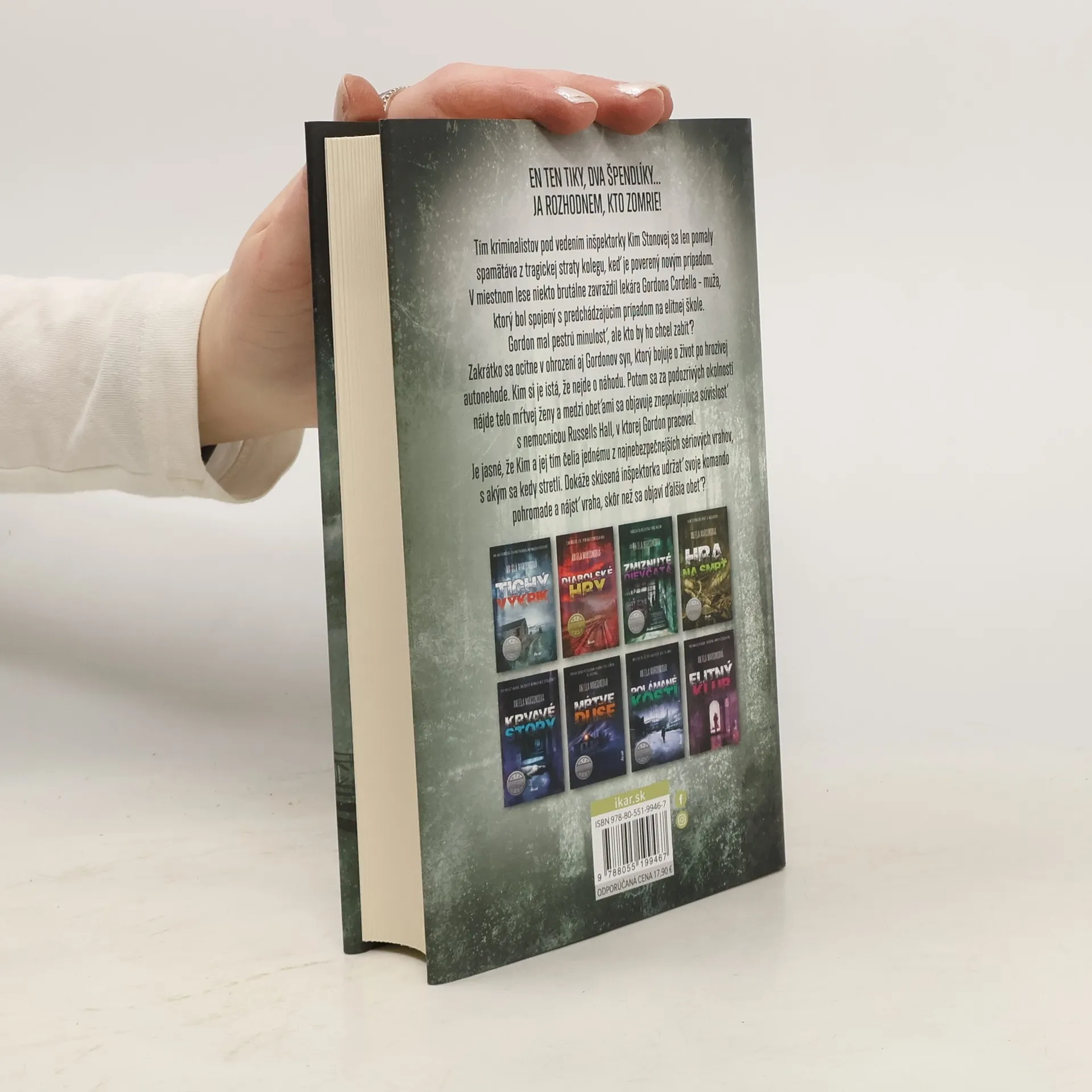Tím kriminalistov pod vedením inšpektorky Kim Stonovej sa len pomaly spamätáva z tragickej straty kolegu, keď je poverený novým prípadom. V miestnom lese niekto brutálne zavraždil lekára Gordona Cordella – muža, ktorý bol spojený s predchádzajúcim prípadom na elitnej škole. Gordon mal pestrúminulosť, ale kto by ho chcel zabiť? Zakrátko sa ocitne v ohrození aj Gordonov syn, ktorý bojuje o život po hrozivej autonehode. Kim si je istá, že nejde o náhodu. Potom sa za podozrivých okolností nájde telo mŕtvej ženy a medzi obeťami sa objavuje znepokojujúca súvislosť s nemocnicou Russells Hall, v ktorej Gordon pracoval. Je jasné, že Kim a jej tím čelia jednému z najnebezpečnejších sériových vrahov, s akým sa kedy stretli. Dokáže skúsená inšpektorka udržať svoje komando pohromade a nájsť vraha, skôr než sa objaví ďalšia obeť?