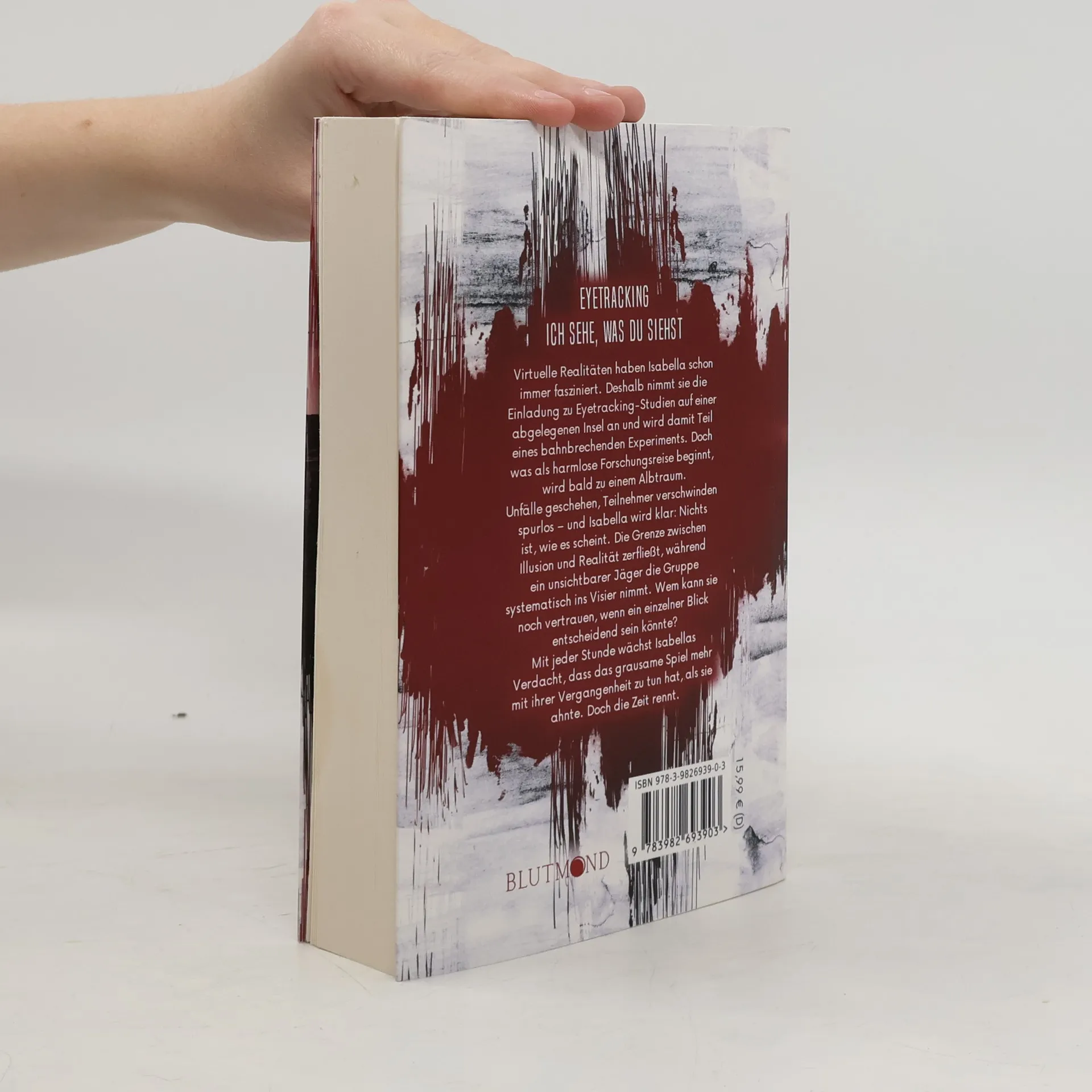 Virtuelle Realitäten haben Isabella schon immer fasziniert. Deshalb nimmt sie die Einladung zu Eyetracking-Studien auf einer abgelegenen Insel an und wird damit Teil eines bahnbrechenden Experiments. Doch was als harmlose Forschungsreise beginnt, wird bald zu einem Albtraum. Unfälle geschehen, Teilnehmer verschwinden spurlos – und Isabella wird klar: Nichts ist, wie es scheint. Die Grenze zwischen Illusion und Realität zerfließt, während ein unsichtbarer Jäger die Gruppe systematisch ins Visier nimmt. Wem kann sie noch vertrauen, wenn ein einzelner Blick entscheidend sein könnte? Mit jeder Stunde wächst Isabellas Verdacht, dass das grausame Spiel mehr mit ihrer Vergangenheit zu tun hat, als sie ahnte. Doch die Zeit rennt.