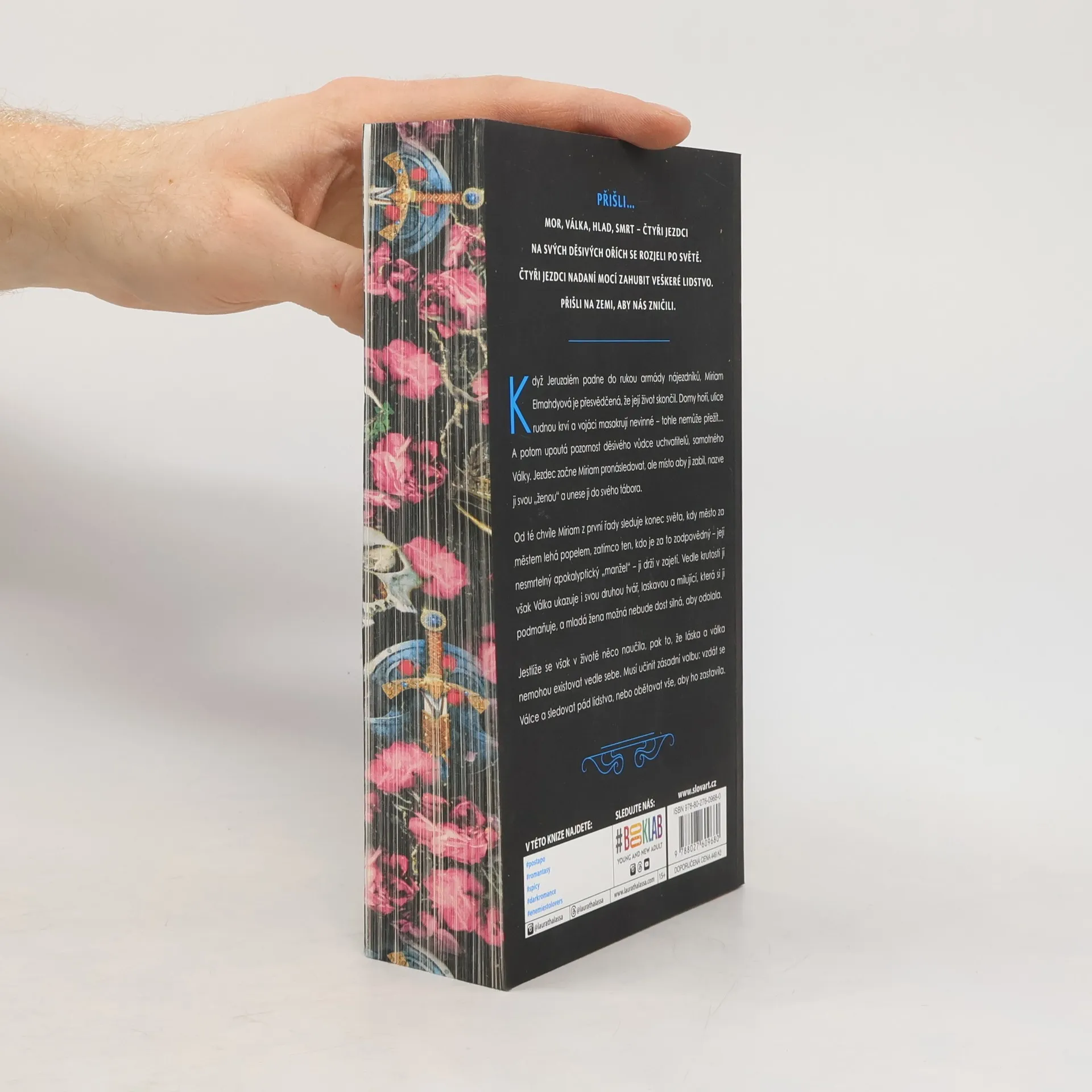 Přišli na zemi - Mor, Válka, Hlad a Smrt - čtyři Jezdci apokalypsy, kteří se na svých hrůzostrašných ořích rozjeli po světě nadáni mocí zahubit veškeré lidstvo. Když Jeruzalém padne do rukou armády nájezdníků, Miriam Elmahdyová je přesvědčená, že její život skončil. Domy hoří, ulice rudnou krví a vojáci masakrují nevinné - tohle nemůže přežít… A potom upoutá pozornost děsivého vůdce uchvatitelů, samotného Války. Jezdec se vydá Miriam pronásledovat, ale místo aby ji zabil, nazve ji svou „manželkou" a unese ji do svého tábora. Od té chvíle mladá žena z první řady sleduje konec světa, kdy město za městem lehá popelem, zatímco ten, kdo je za to zodpovědný - její nesmrtelný apokalyptický „manžel" - ji drží v zajetí. Vedle krutosti jí však Válka ukazuje i svou druhou tvář, laskavou a milující, která si ji podmaňuje, a Miriam možná nebude dost silná, aby odolala. Jestliže se však v životě něco naučila, pak to, že láska a válka nemohou existovat vedle sebe. Musí učinit zásadní volbu: vzdát se Válce a sledovat pád lidstva, nebo obětovat vše, aby ho zastavila.