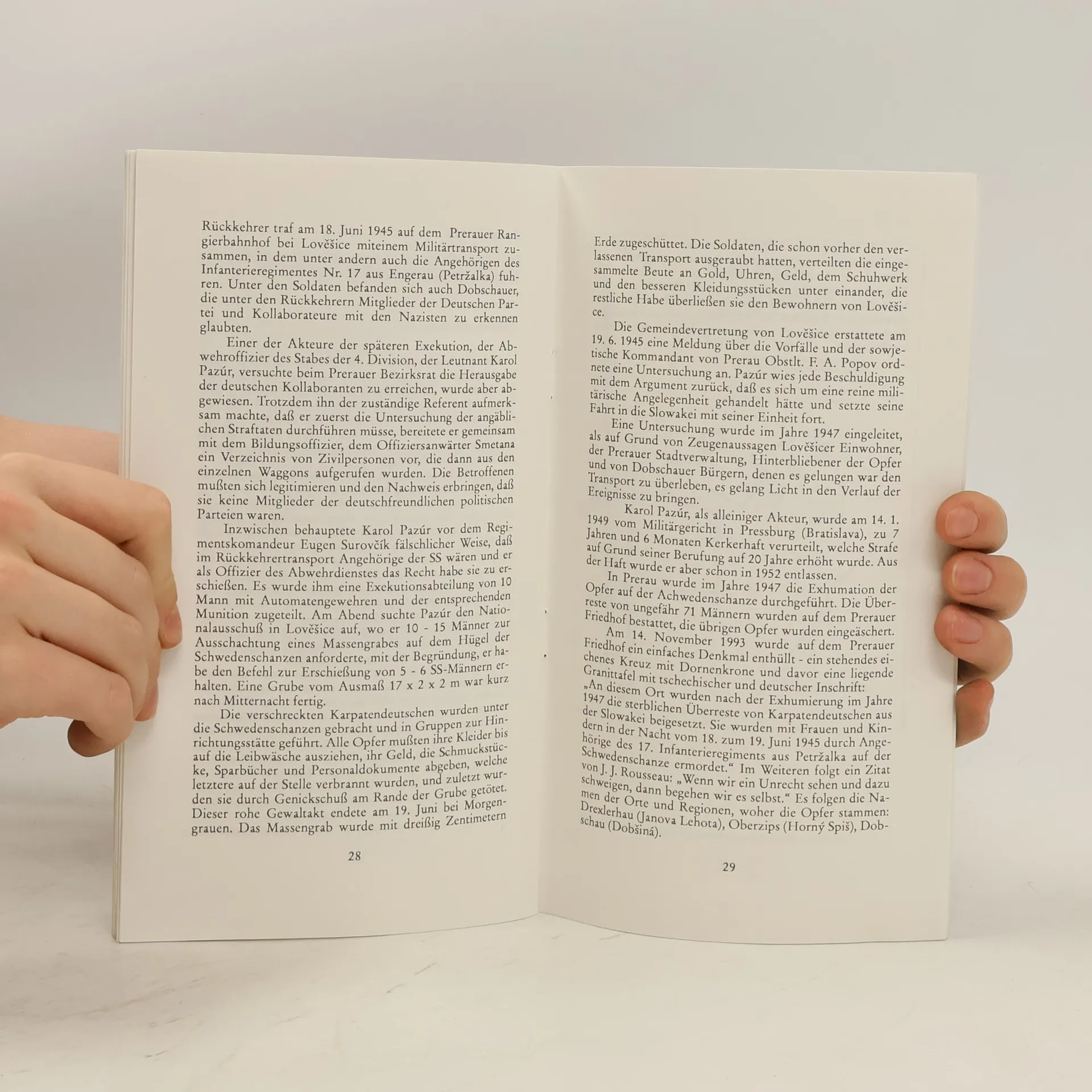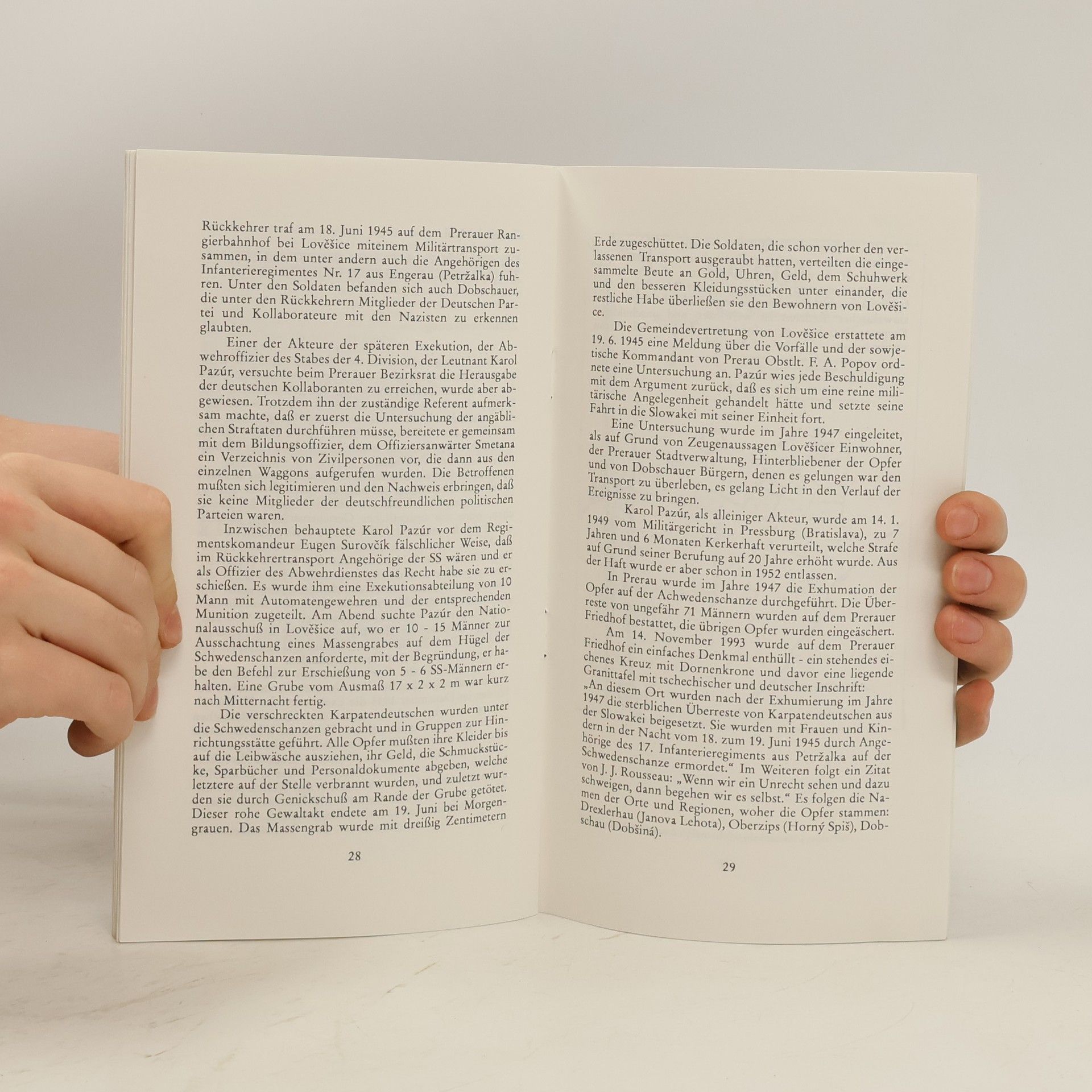 Drobný spis připomíná poválečnou tragédii karpatských Němců, kteří byli zavražděni v Horních Moštěnicích u Přerova při transportu v červnu 1945.