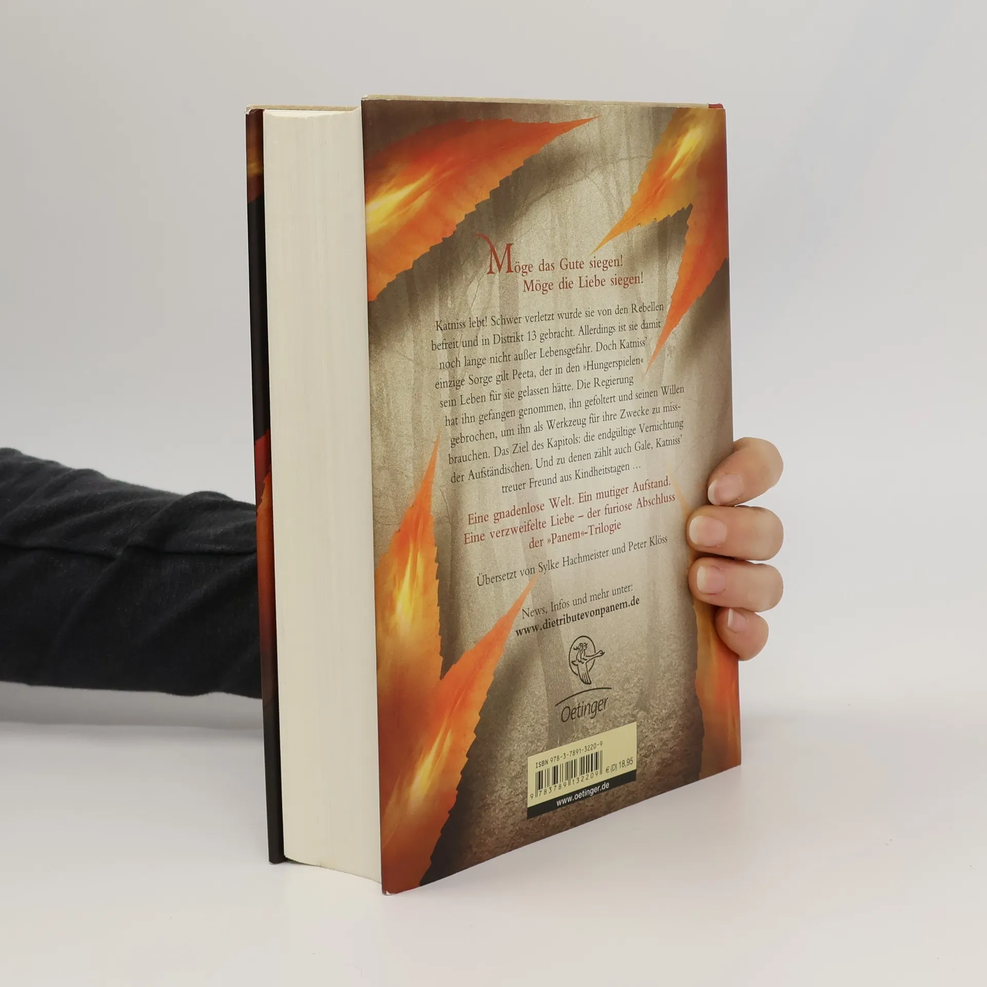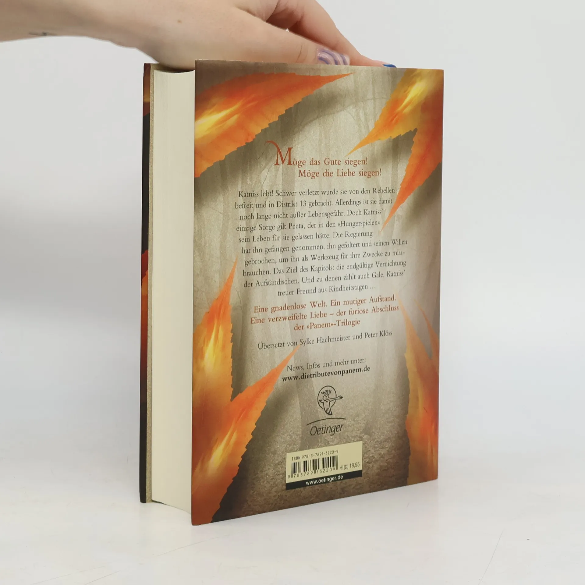 An alternative cover edition for this ISBN can be found here . Schwer verletzt wurde Katniss von den Rebellen befreit und in Distrikt 13 gebracht. Doch ihre einzige Sorge gilt Peeta, der dem Kapitol in die Hände gefallen ist. Die Regierung setzt alle daran, seinen Willen zu brechen, um ihn als Waffe gegen die Rebellen einsetzen zu können. Gale hingegen kämpft weiterhin an der Seite der Aufständischen, und das, zu Katniss' Schrecken, ohne Rücksicht auf Verluste. Als sie merkt, dass auch die Rebellen versuchen, sie für ihre Ziele zu missbrauchen, wird ihr klar, dass sie alle nur Figuren in einem perfiden Spiel sind. Es scheint ihr fast unmöglich, die zu schützen, die sie liebt.