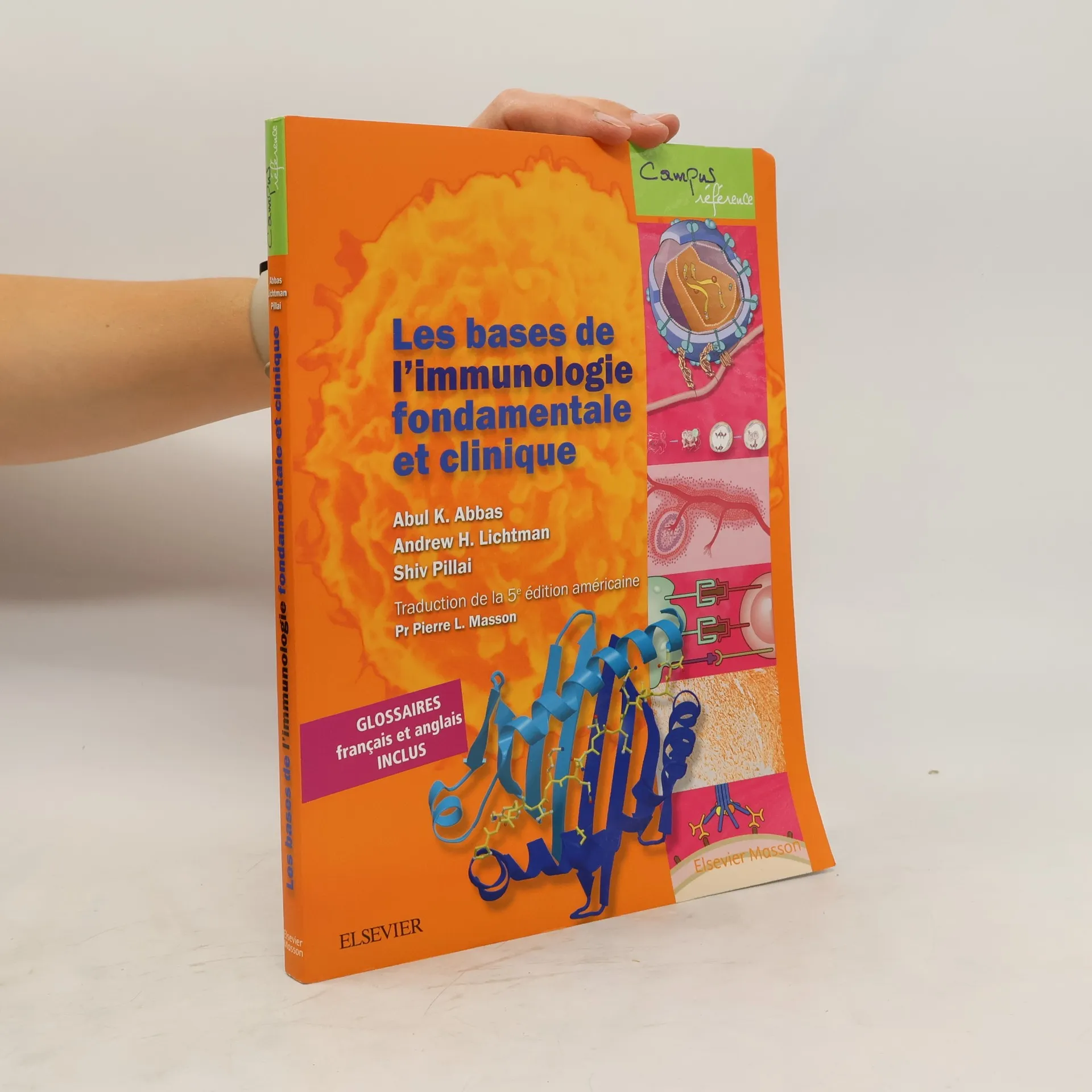 La quatrième de couverture indique : "Un panorama complet et abordable des concepts essentiels de l'immunologie ! Grâce à une présentation synthétique et claire des principes clés du fonctionnement du système immunitaire, ce manuel vous accompagne dans l'assimilation des bases de l'immunologie moderne. Cette 5e édition intègre les avancées les plus récentes dans la compréhension du système immunitaire et leurs applications cliniques pour le traitement des maladies associées à ses dérégulations, notamment l'immunothérapie du cancer, qui connaît un développement remarquable. Une édition indispensable aux étudiants : les différents types de mécanismes qui déclenchent et gouvernent les réponses immunitaires ; 200 illustrations en couleurs ; des cas cliniques détaillés pour mieux comprendre l'application des principes aux maladies les plus communes ; des résumés des points clés de chaque chapitre ; un contrôle des connaissances à la fin de chaque chapitre vous offre la possibilité de vous tester ; en annexe, un récapitulatif présente les familles et structures moléculaires, les fonctions connues ou supposées, les effets biologiques, et autres spécificités des différentes cytokines et des molécules CD traitées dans l'ouvrage ; un glossaire des termes techniques en français et en anglais."