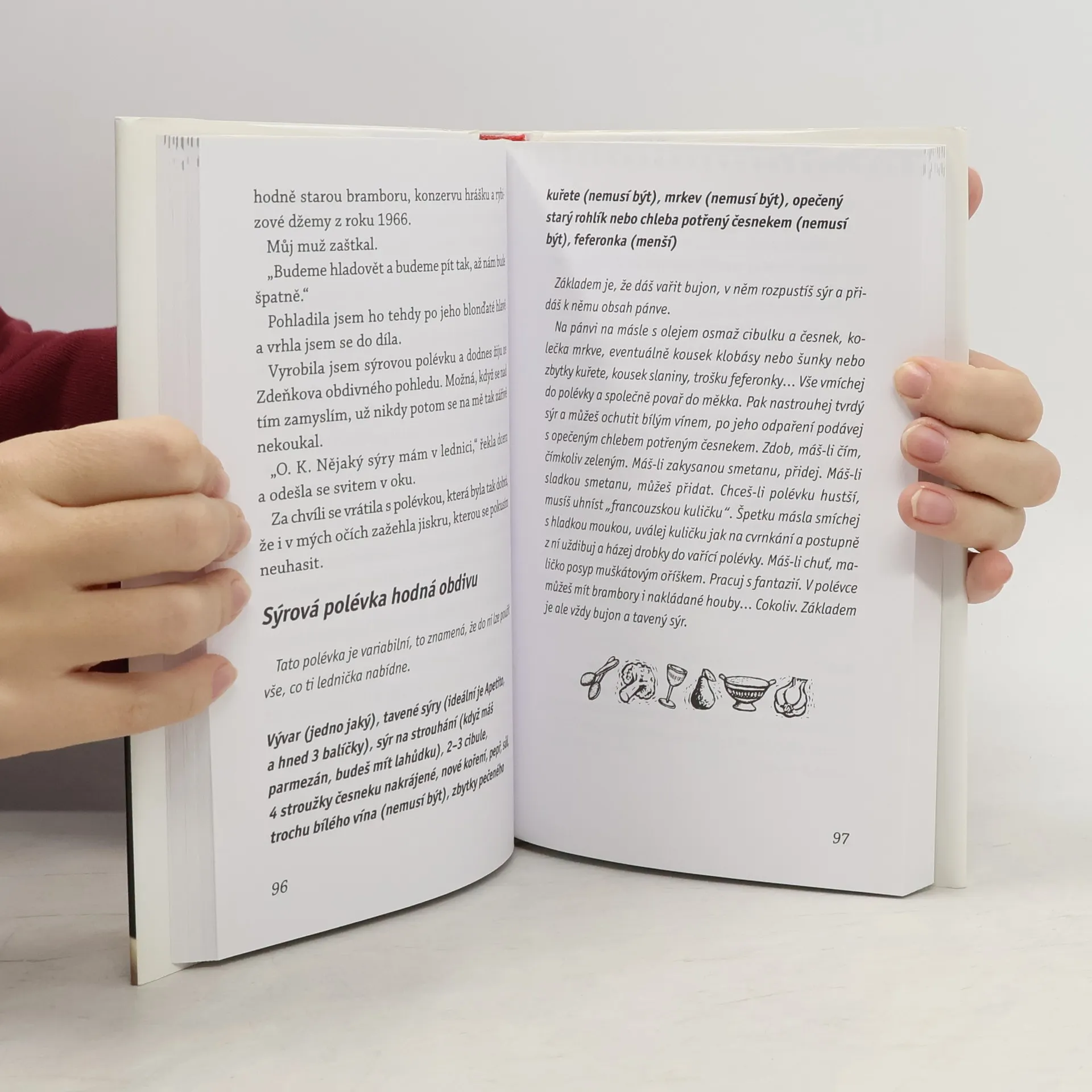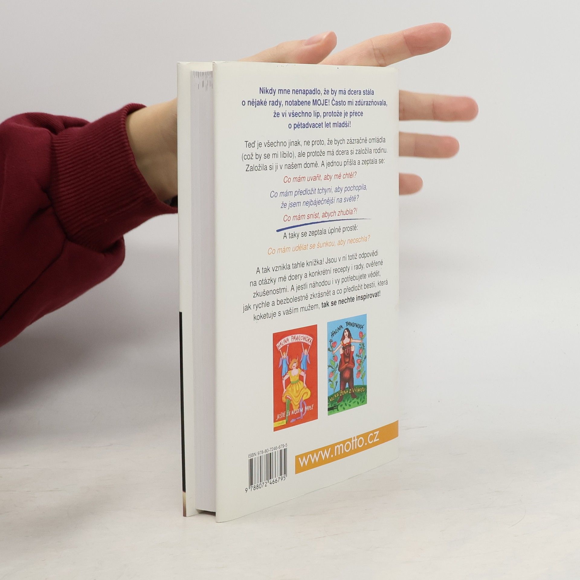 Nikdy mne nenapadlo, že by má dcera stála o nějaké rady, notabene MOJE! Často mi zdůrazňovala, že ví všechno líp, protože je přece o pětadvacet let mladší! Teď je všechno jinak, ne proto, že bych zázračně omládla (což by se mi líbilo), ale protože má dcera si založila rodinu. Založila si ji v našem domě. A jednou přišla a zeptala se: Co mám uvařit, aby mě chtěl? Co mám předložit tchyni, aby pochopila, že jsem nejbáječnější na světě? Co mám sníst, abych zhubla?! A taky se zeptala úplně prostě: Co mám udělat se šunkou, aby neoschla? A tak vznikla tahle knížka! Jsou v ní totiž odpovědi na otázky mé dcery a jsou v ní konkrétní recepty i rady, jejichž pravdivost je ověřená zkušenostmi. A jestli náhodou i vy potřebujete vědět, jak rychle a bezbolestně zkrásnět a co předložit bestii, která koketuje s vaším mužem, tak se nechte inspirovat! Dobrou chuť!