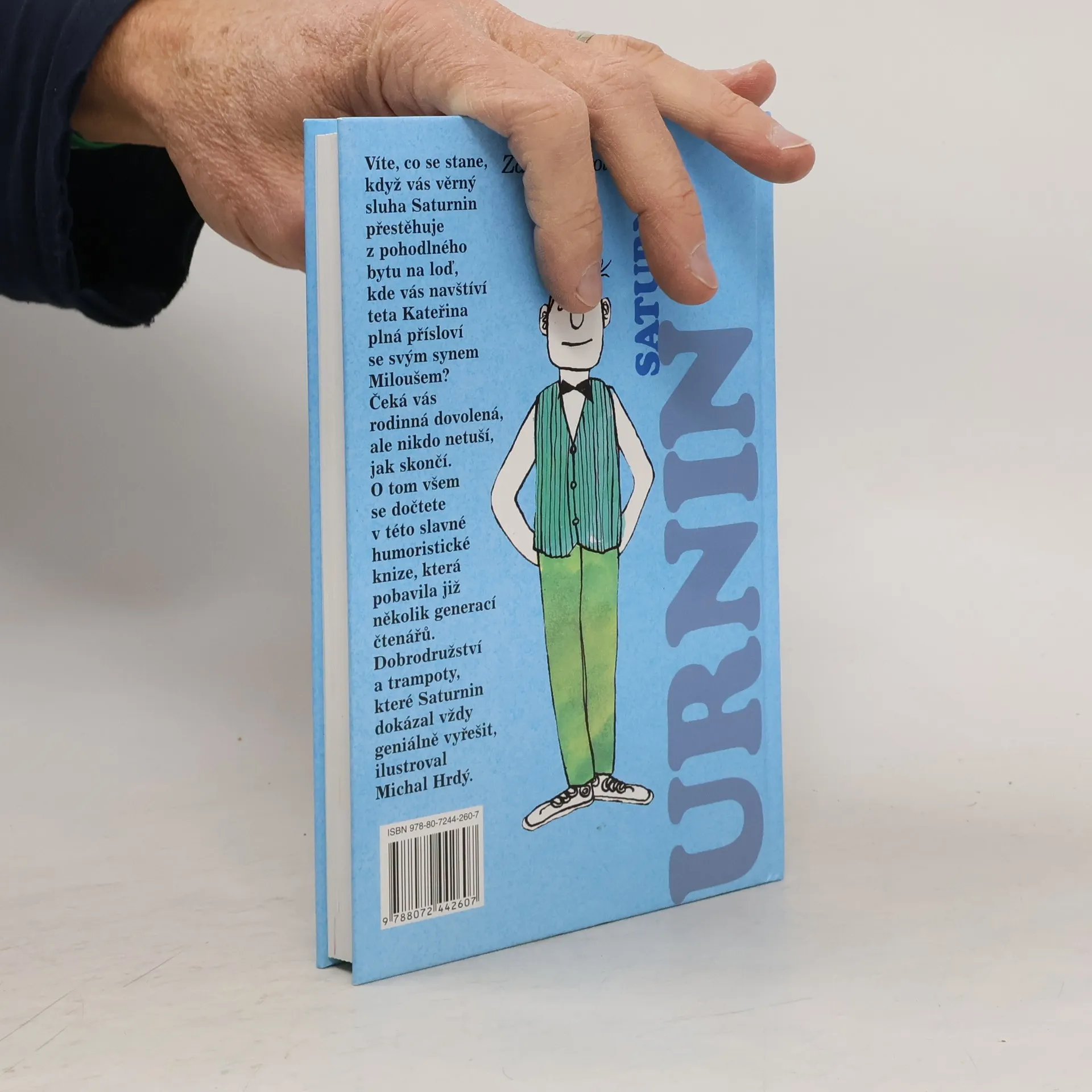 Nejlepší průpravu ke zdravé životní filozofii vám poskytne sluha Saturnin, který s vtipem čelí přetvářce tety Kateřiny a všem katastrofám při rodinné dovolené u dědečka odříznutého povodní od civilizace. Nové vydání slavné humoristické knihy, která pobavila již několik generacíčtenářů, ilustroval Michal Hrdý. Na jejích stránkách se dovíte, co se stane, když vás věrný sluha Saturnin přestěhuje z pohodlného bytu na loď, kde vás navštíví teta Kateřina plná přísloví se svým synem Miloušem, a co se přihodí u dědečka, jehož dům je povodní načas odříznut od civilizace. Všem nepříjemnostem, katastrofám i přetvářce tety Kateřiny naštěstí umí s jiskřivým vtipem čelit Saturnin. Jeho schopnosti jsou téměř geniální, a přitom je to tak prosté, jak píše o Saturninovi v dopise dědeček: "V bláznivých nápadech toho chlapíka je kus poezie, jeho humor, fantazie a podivuhodné myšlenkové přemety dovedou udělat detektivku z jízdního řádu a člověk cítí, že nemusil tak zestárnout, kdyby si byl nezapomněl hrát." Dotisk v r. 2011.