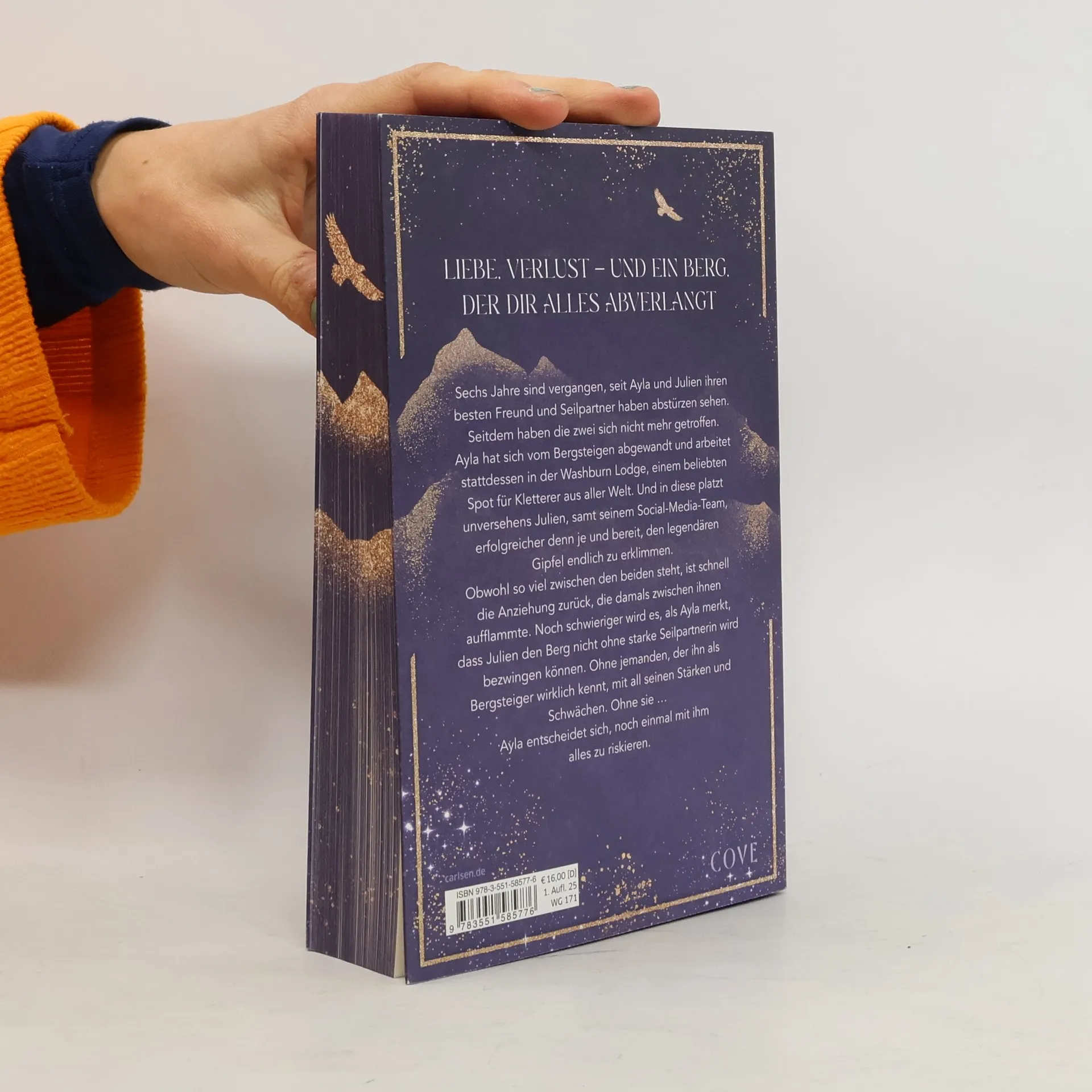 **Liebe, Verlust – und ein Berg, der dir alles abverlangt** Sechs Jahre sind vergangen, seit Ayla und Julien ihren besten Freund und Seilpartner haben abstürzen sehen. Seitdem haben sie sich nicht mehr getroffen. Ayla hat sich vom Bergsteigen abgewandt und leitet stattdessen eine Lodge für Kletterer aus aller Welt. Und in diese platzt unversehens Julien, samt Filmcrew und Agentin, erfolgreicher denn je und bereit, den legendären Gipfel endlich zu erklimmen. Obwohl so viel zwischen ihnen steht, ist schnell die Anziehung zurück, die damals zwischen ihnen aufflammte. Noch schwieriger wird es, als Ayla merkt, dass Julien den Berg nicht ohne eine starke Seilpartnerin wird bezwingen können. Ohne jemanden, der ihn als Bergsteiger wirklich kennt. Ohne sie … Ayla entscheidet sich, noch einmal mit ihm alles zu riskieren. Eine unter die Haut gehende New Adult Romance über Mut, Liebe und die Kraft, die Schatten der Vergangenheit zu überwinden. »Niemand lässt mich beim Lesen so viele Emotionen durchleben wie Carina Wilde.« Romance-Autorin Sarah Saxx //Dies ist der erste Band der knisternden Mountain Romance-Dilogie »Velvet Mountains«. Alle Bände der Buchreihe: -- Velvet Mountains 1: Risk With Me -- Velvet Mountains 2: Rise With Me// Die beiden Bände sind unabhängig voneinander lesbar. Zum besseren Verständnis empfiehlt sich eine Lektüre in chronologischer Reihenfolge.//